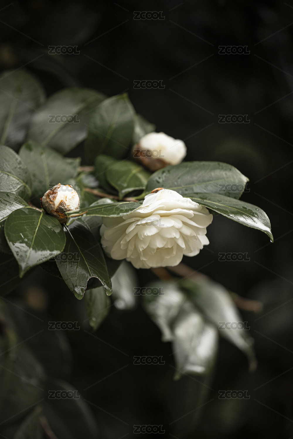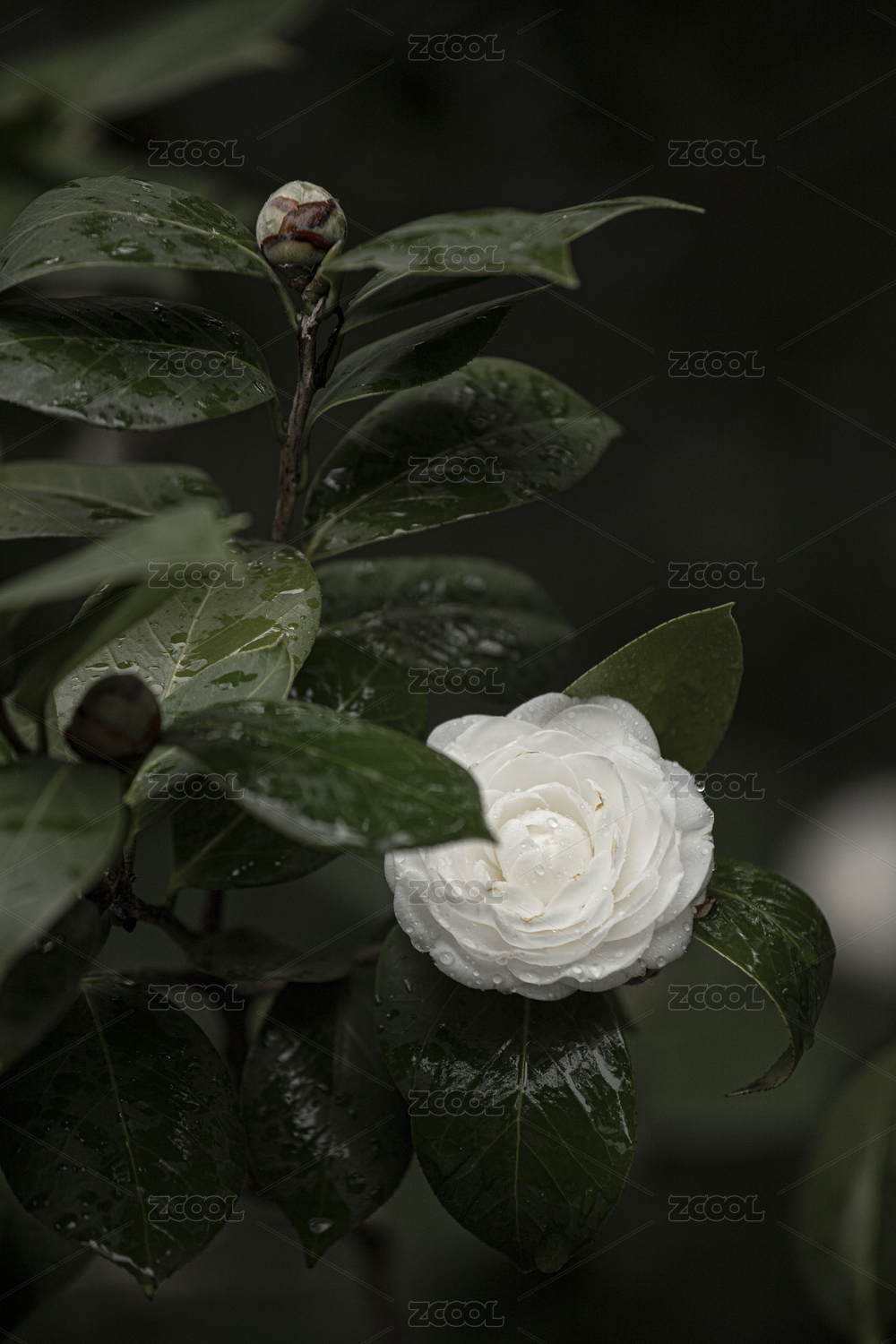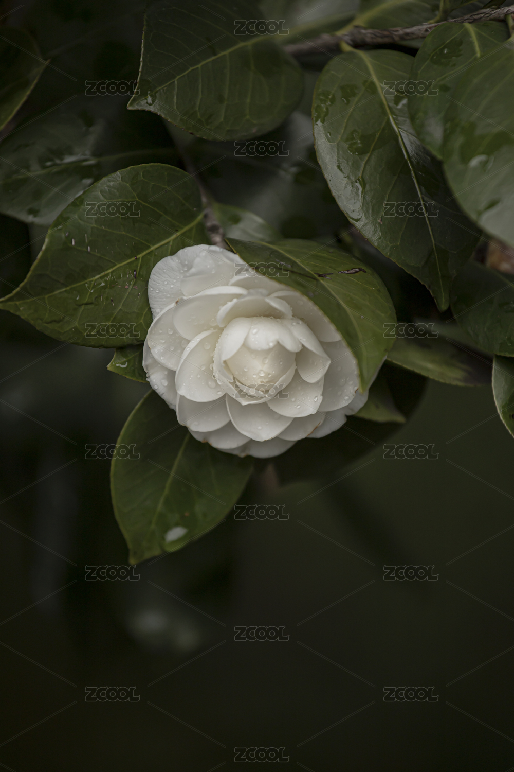 雨天白茶花