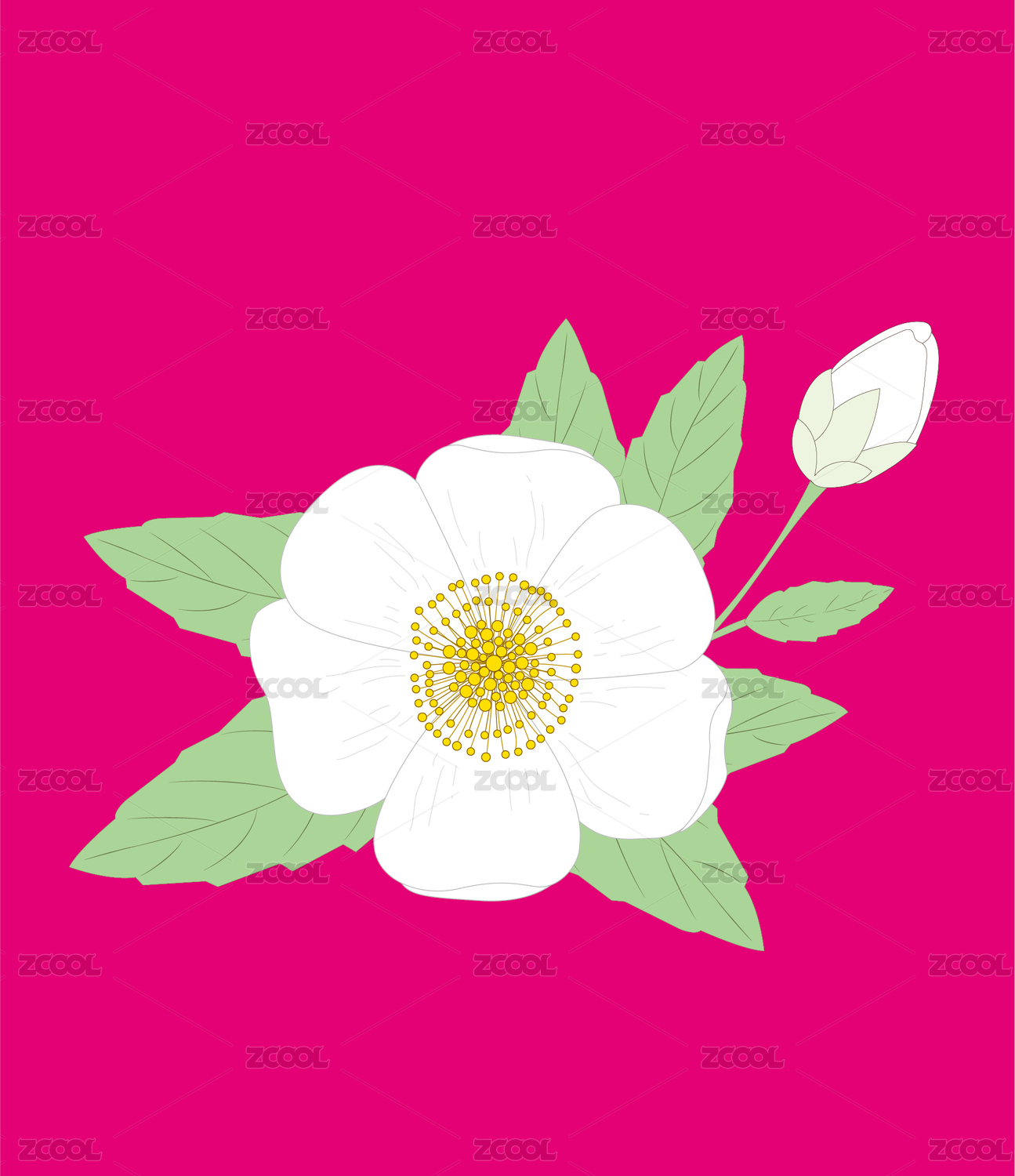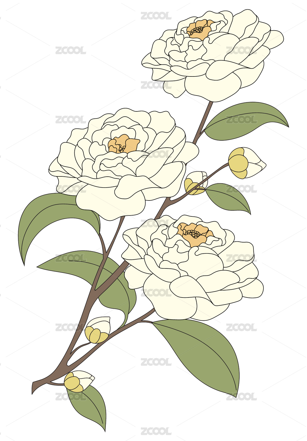 白茶花插畫矢量卡通插畫白花手繪原創(chuàng)花草