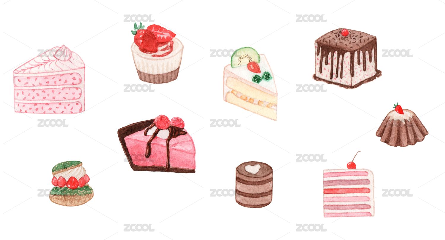水彩手繪風(fēng)格素材(糕點(diǎn)、甜點(diǎn))