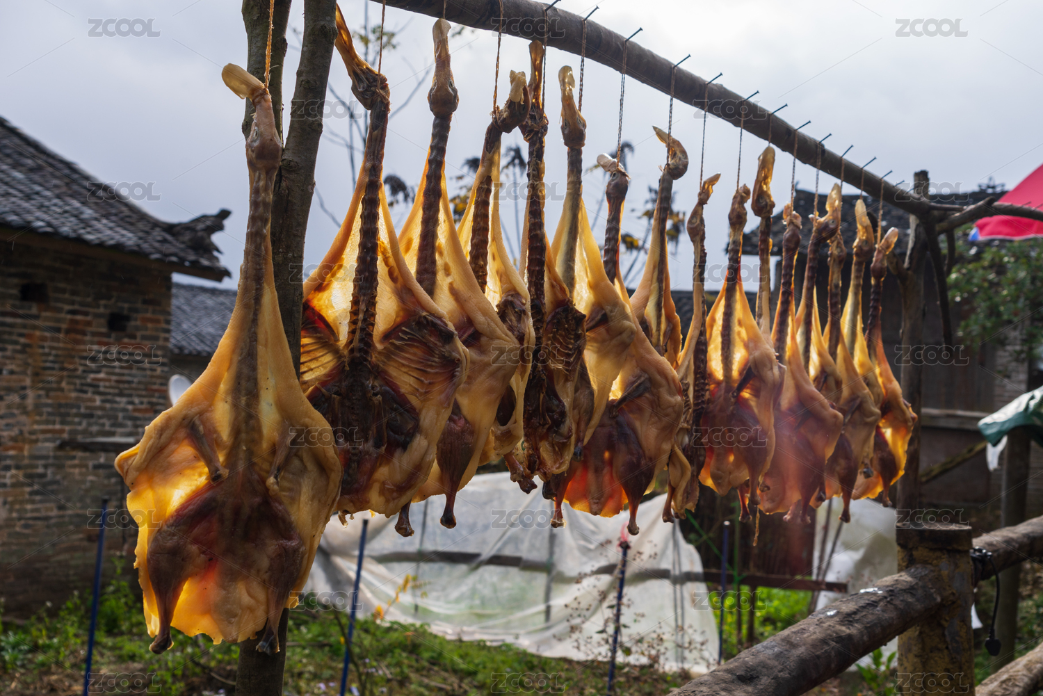 安徽省黃山市黟縣塔川村秋天涼曬的臘鴨子