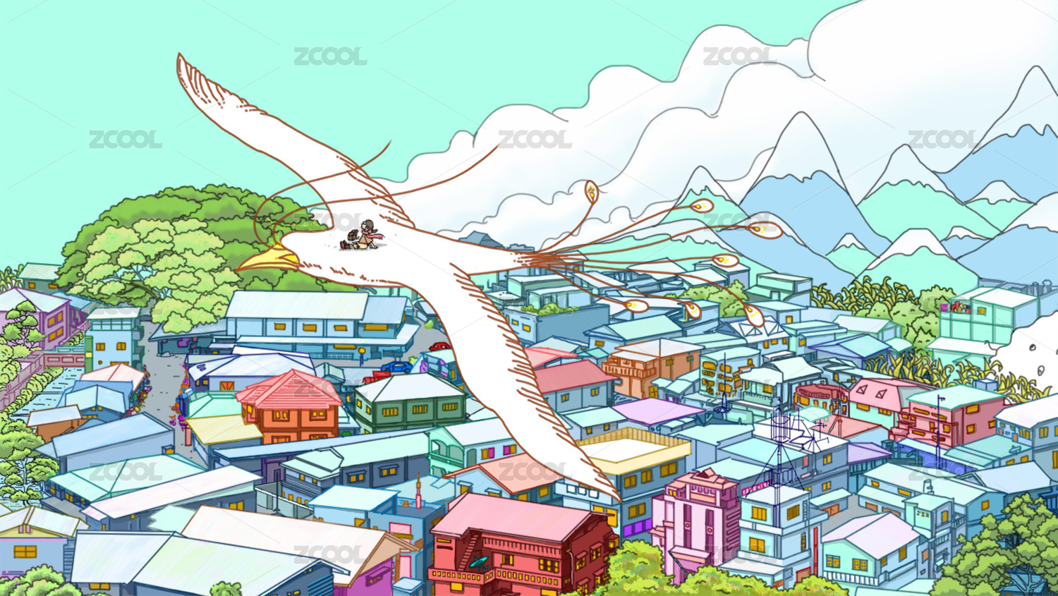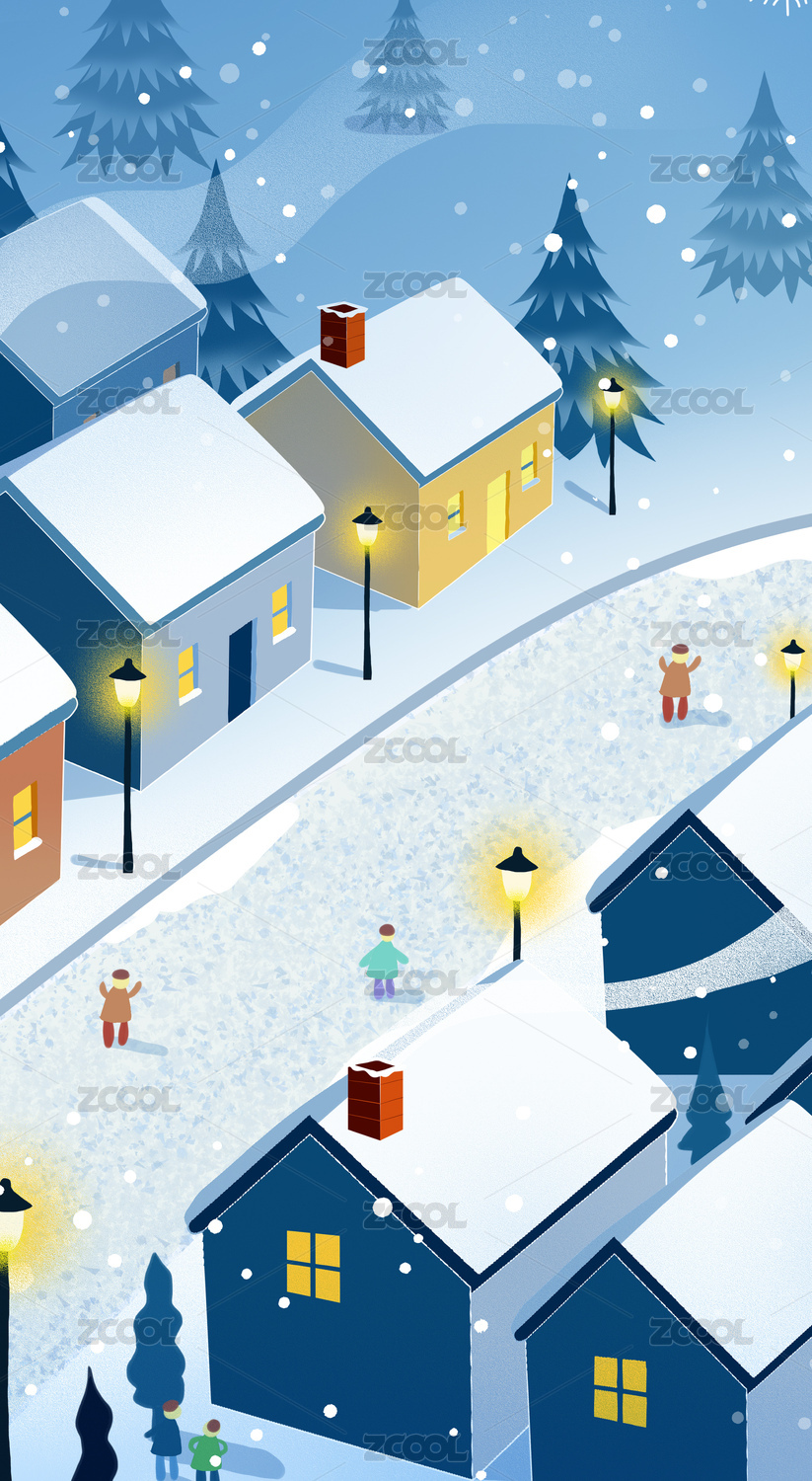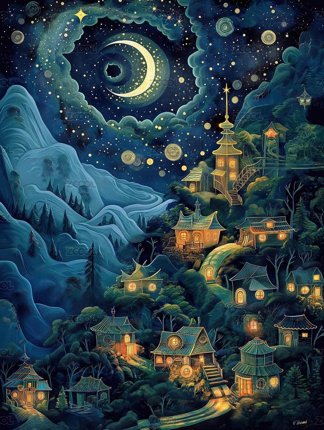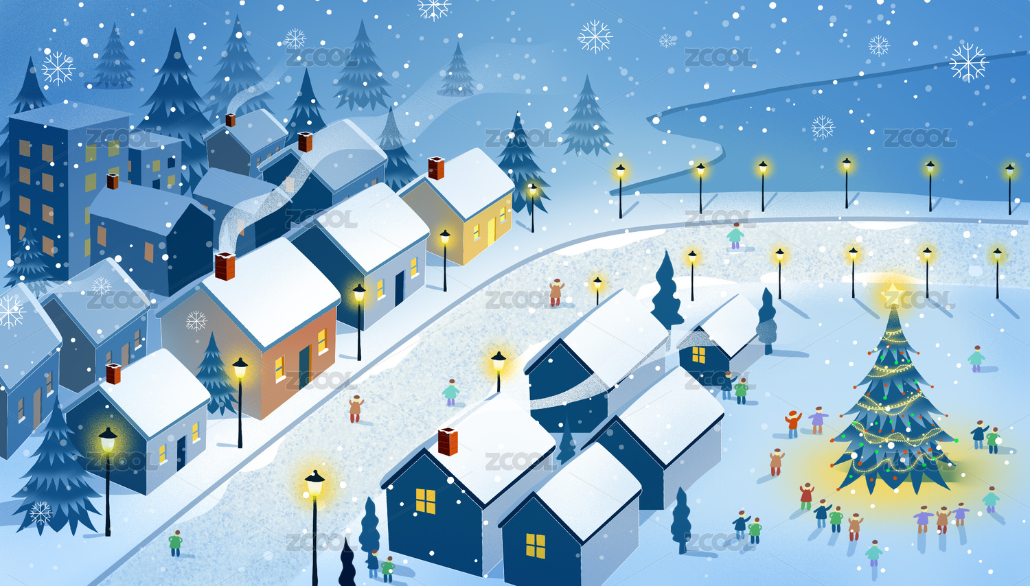 藍(lán)色背景下的溫馨小鎮(zhèn)