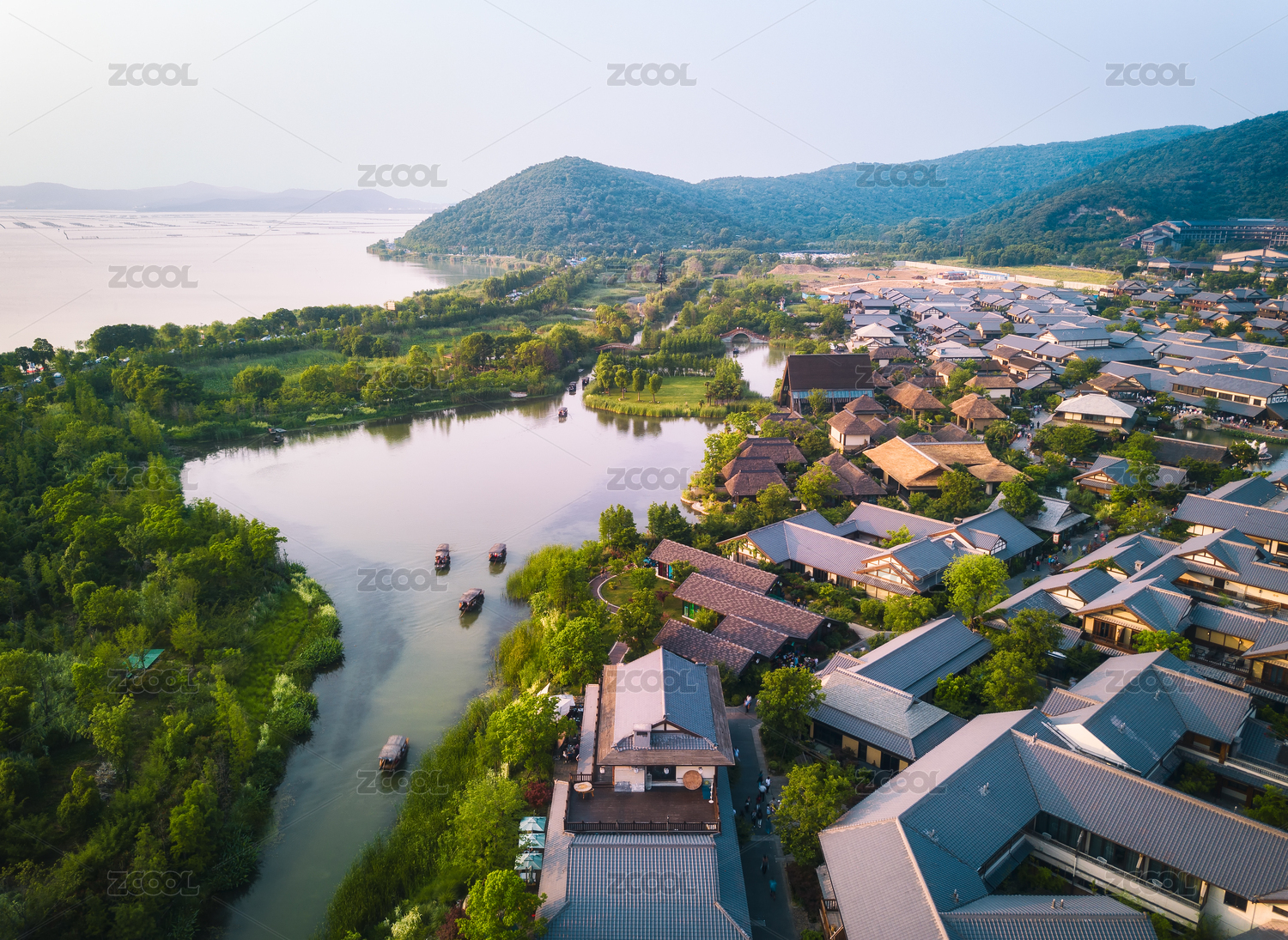 航拍無錫拈花灣小鎮(zhèn)自然建筑風(fēng)光