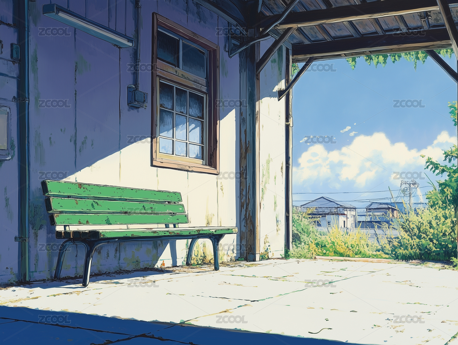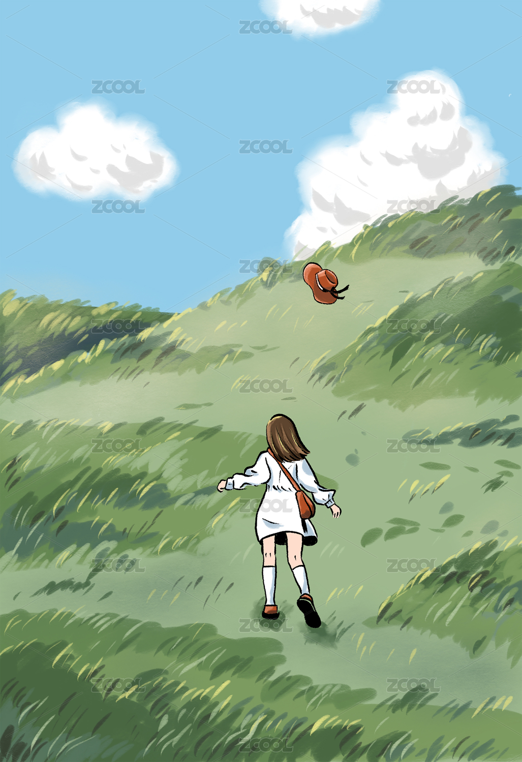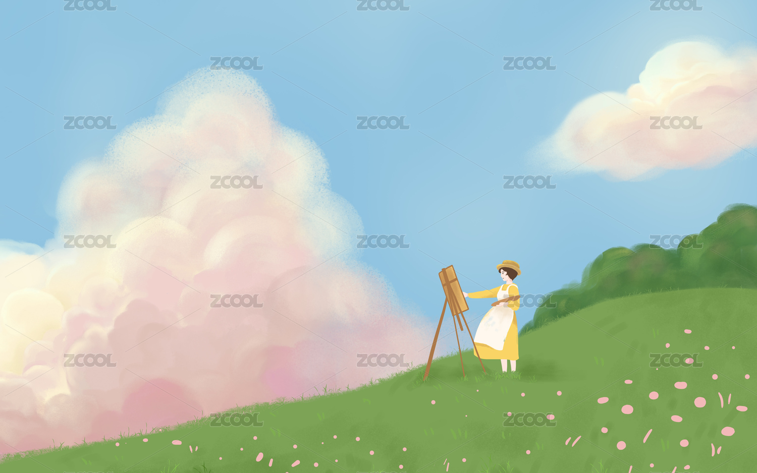 小清新宮崎駿人物風景女孩畫畫場景插畫