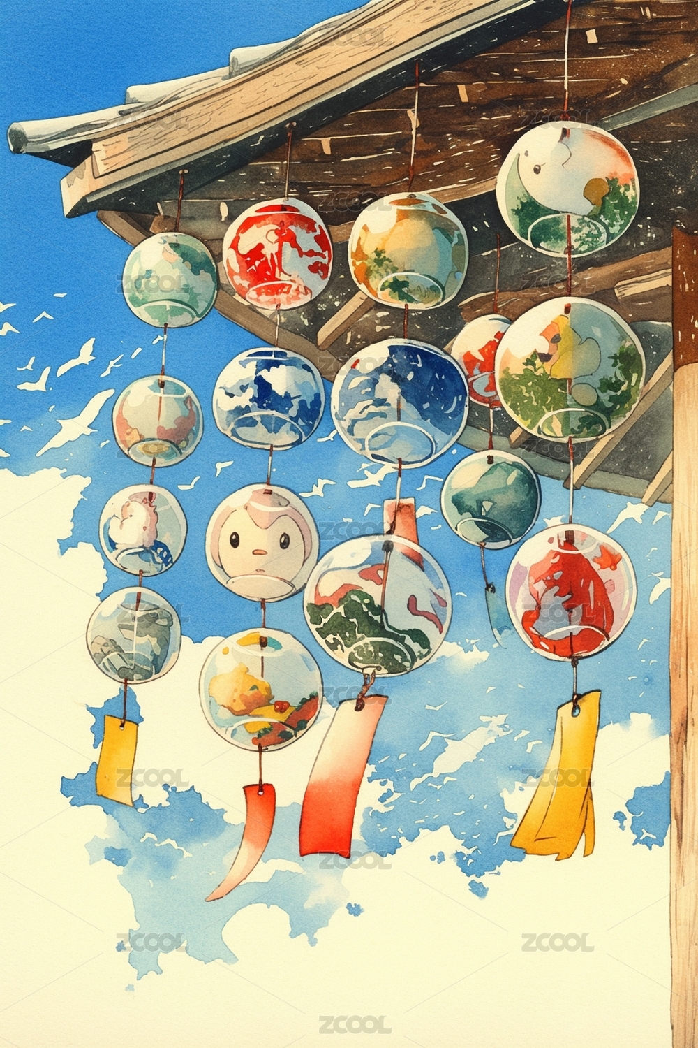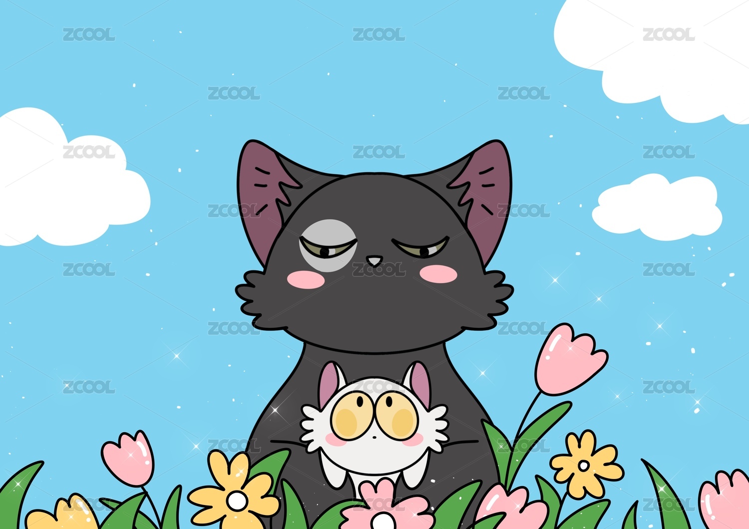 宮崎駿動漫風格可愛貓咪卡通插畫