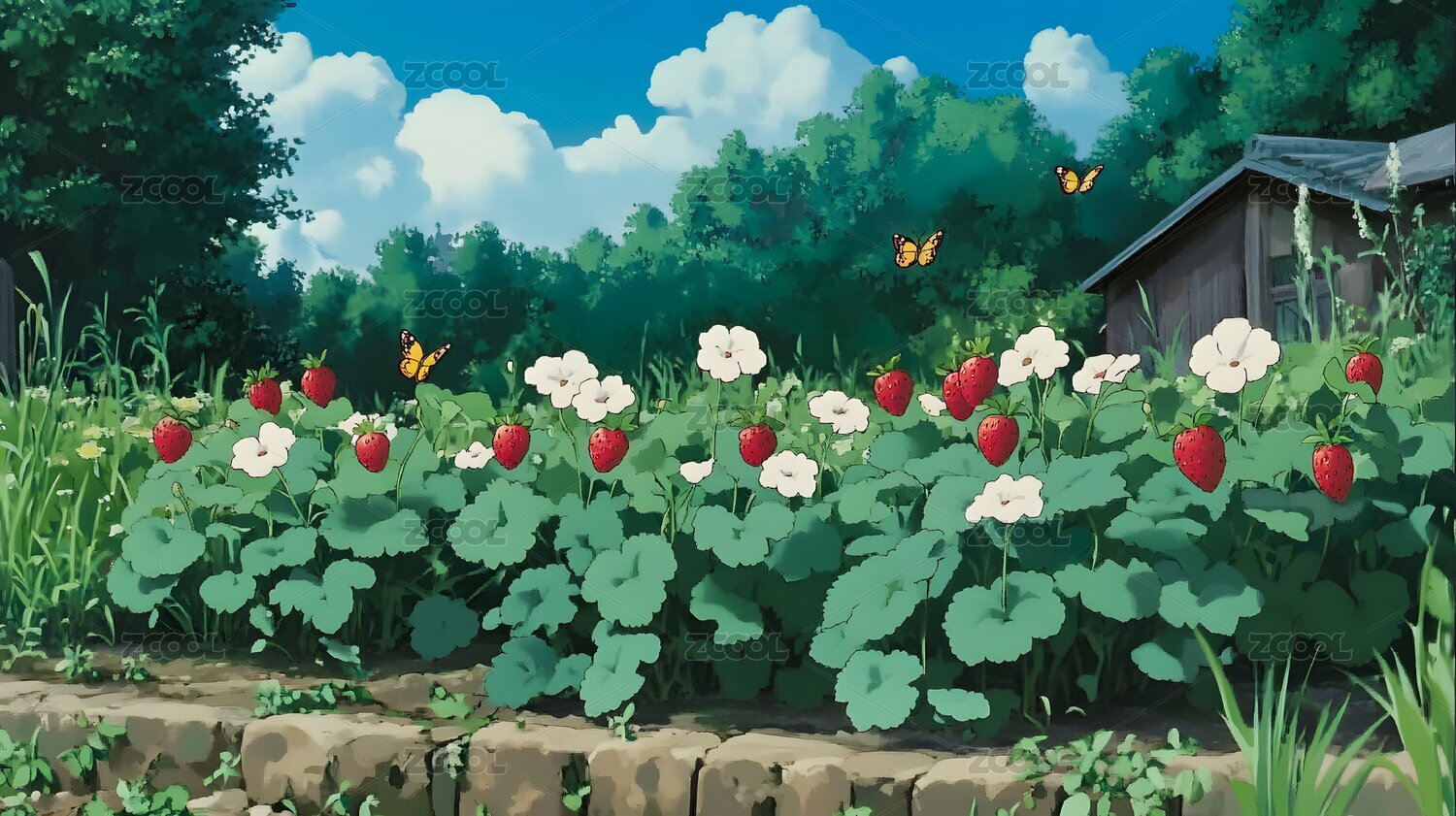 宮崎駿水果草莓地里的果實卜力風格日漫卡通