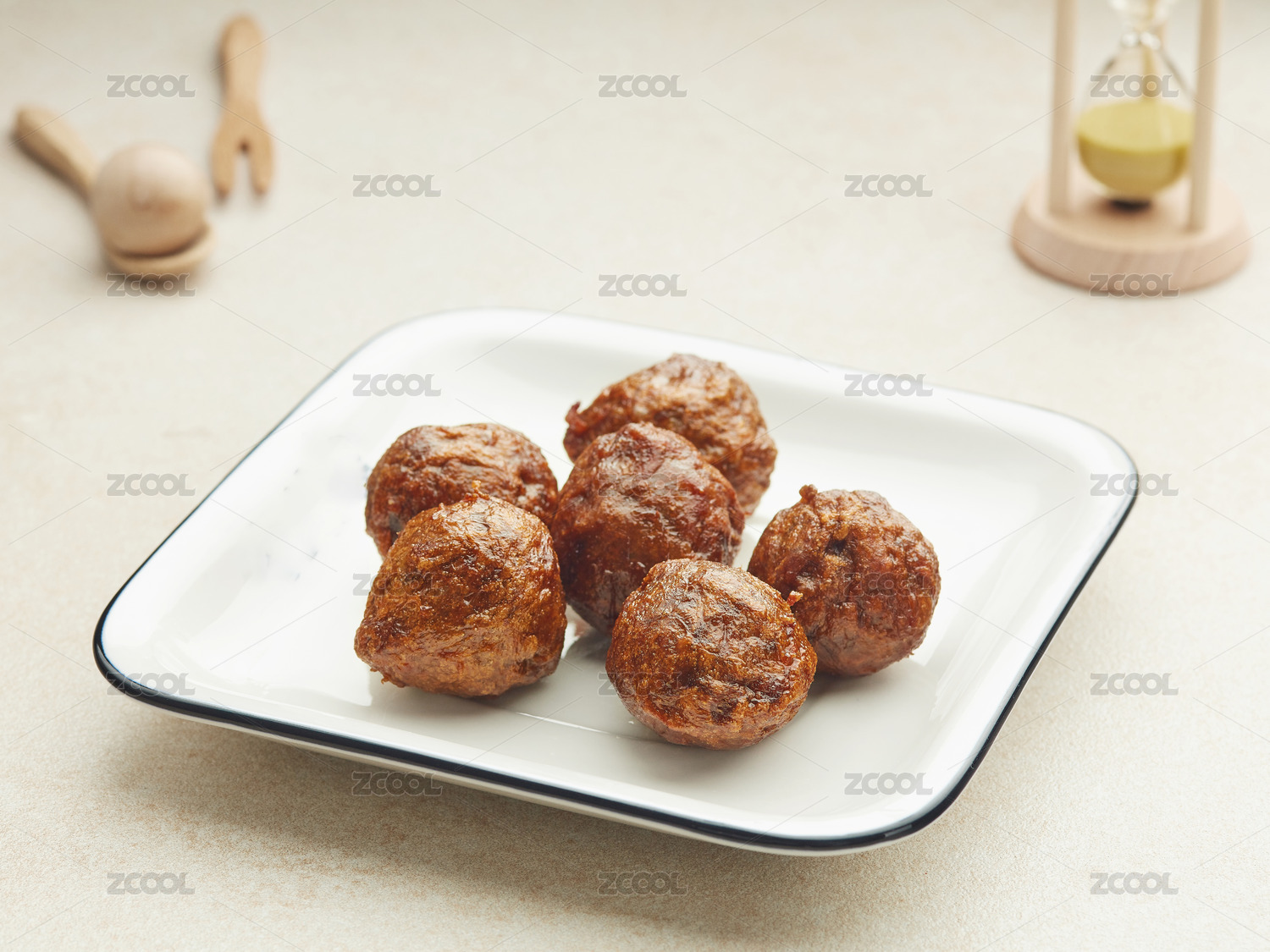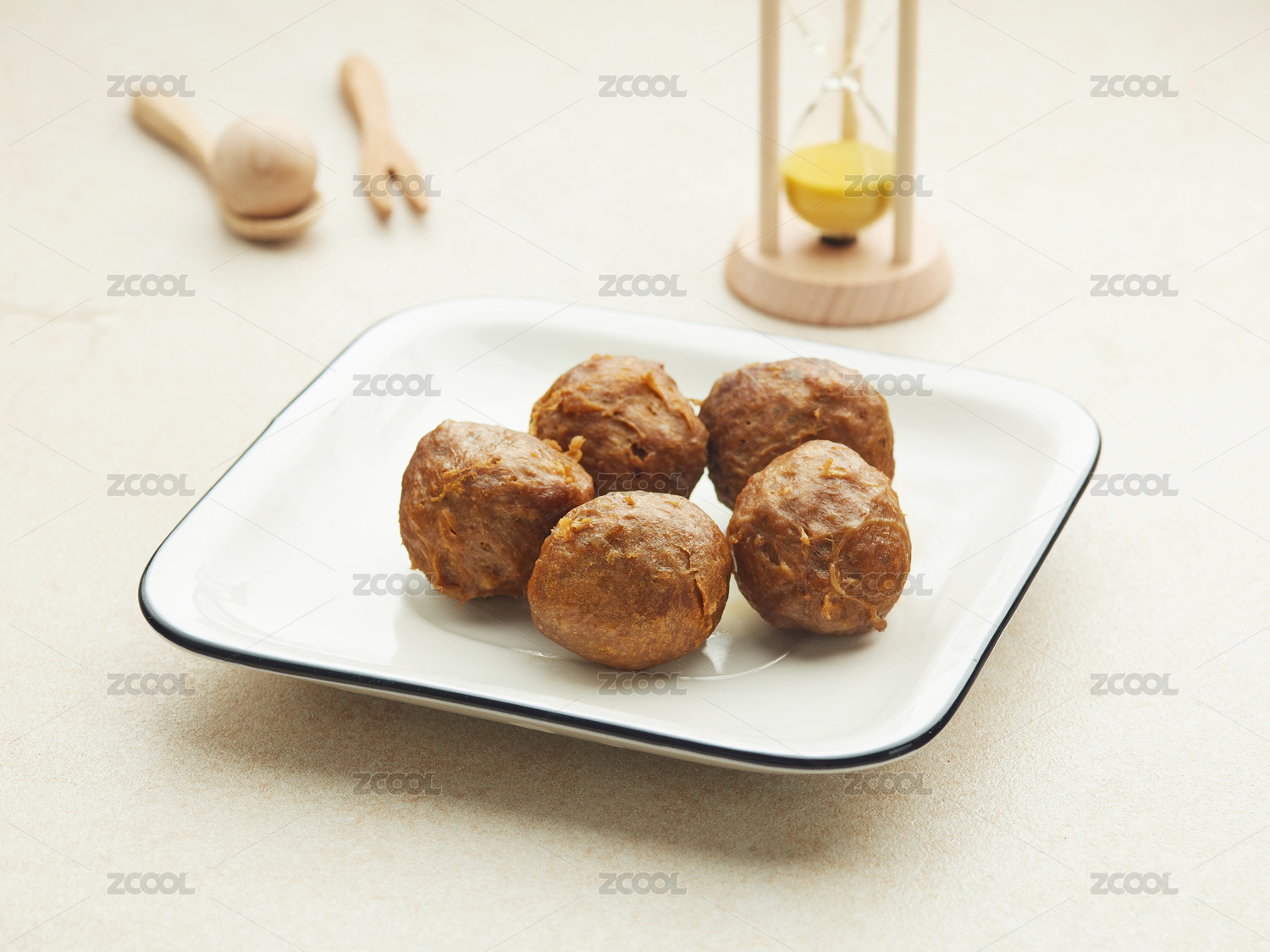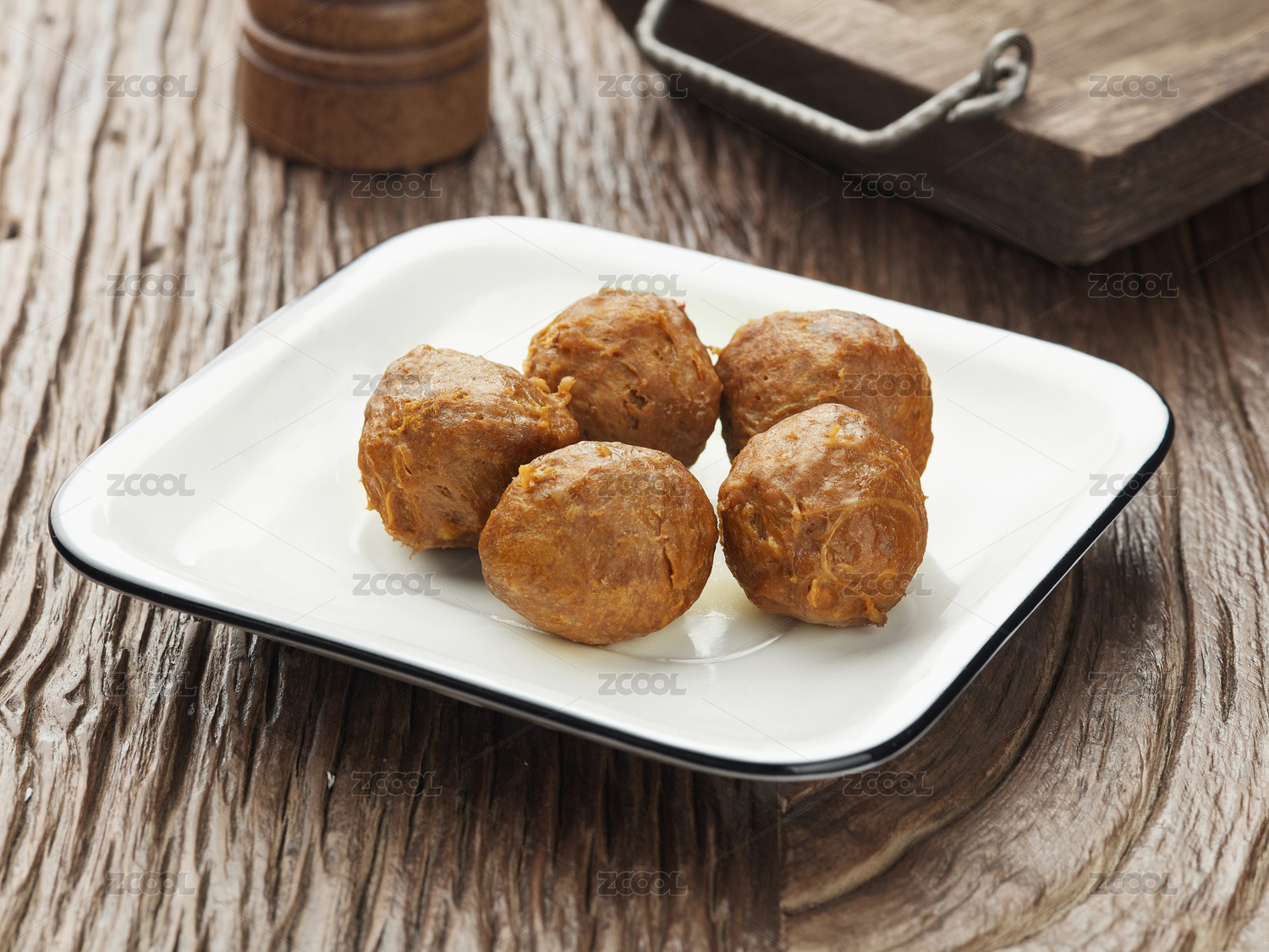 白底上的火鍋菜品:牛筋丸