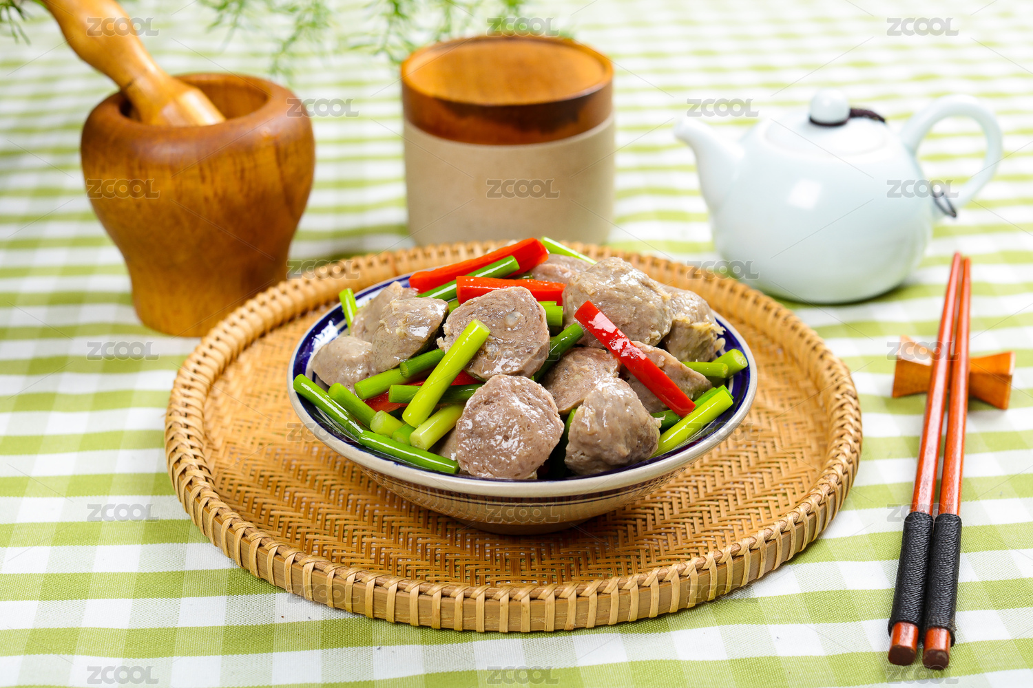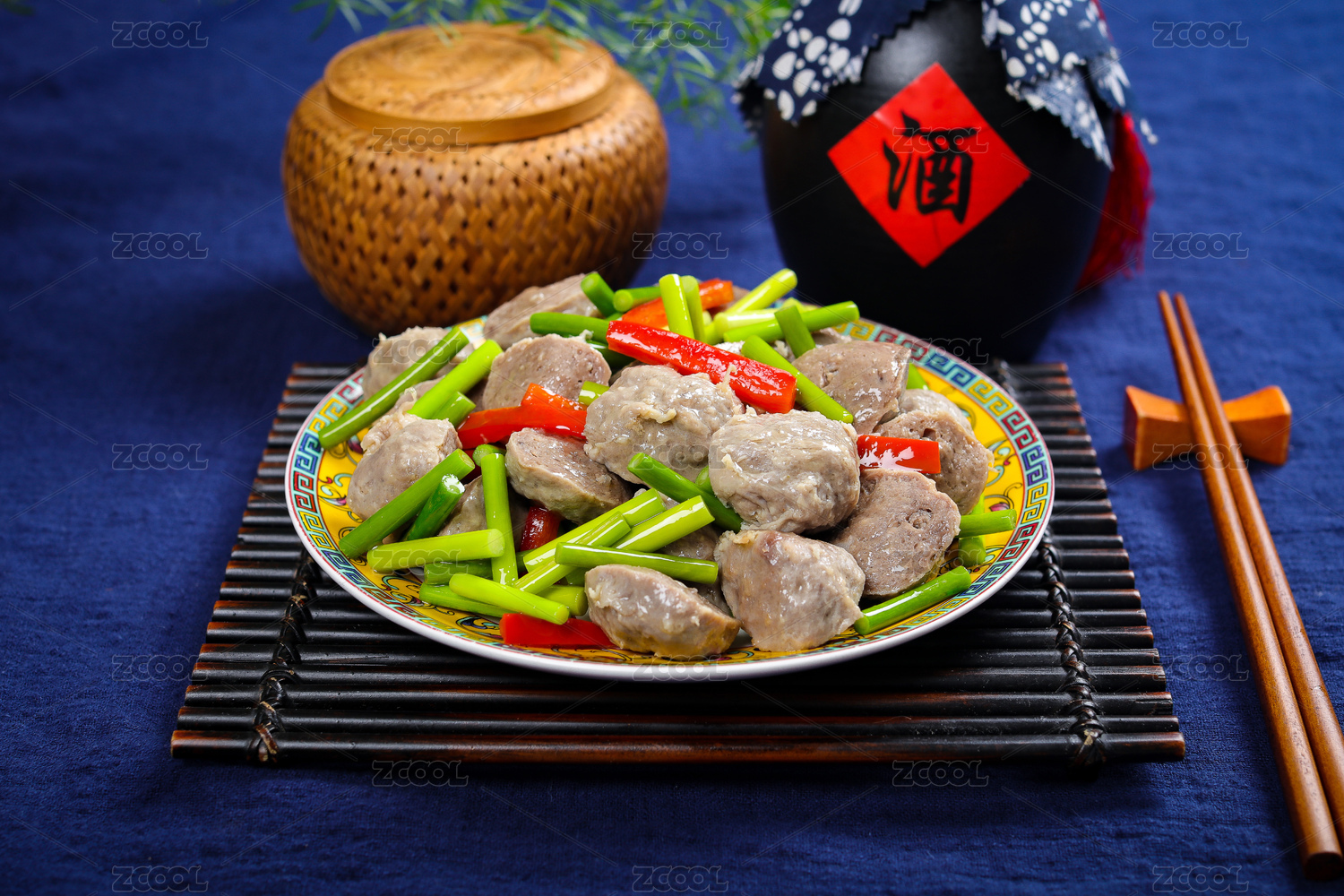 美味下酒菜蒜苔炒牛筋丸