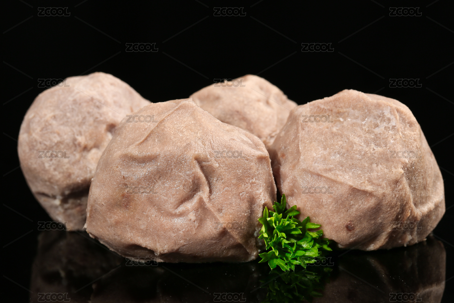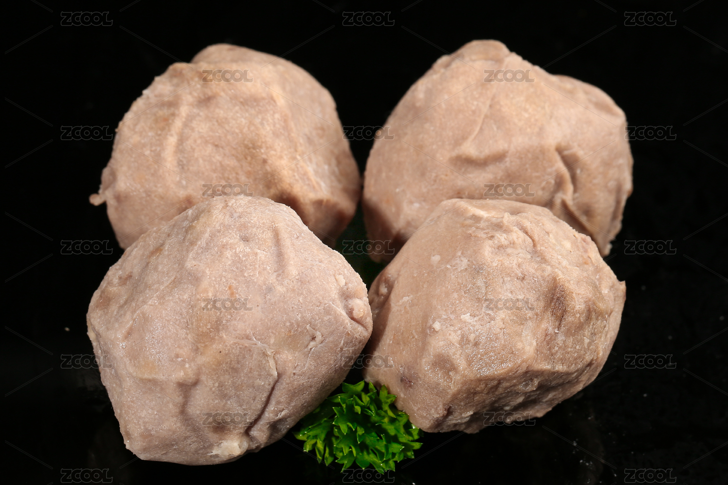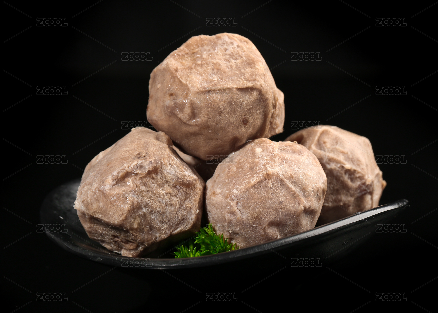 黑底上放著四顆生鮮牛筋丸