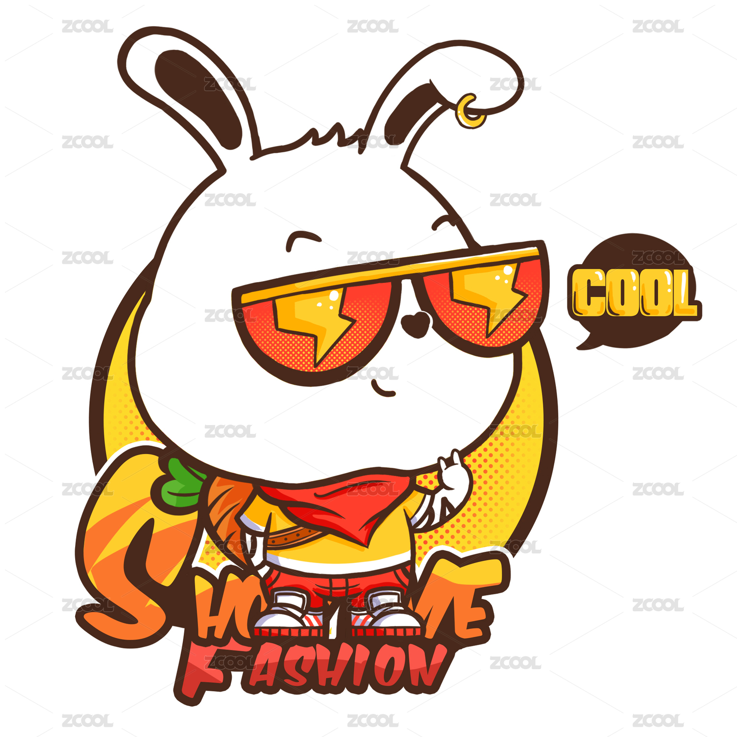 彩色3D卡通動物寵物兔子制服辦公室橙色