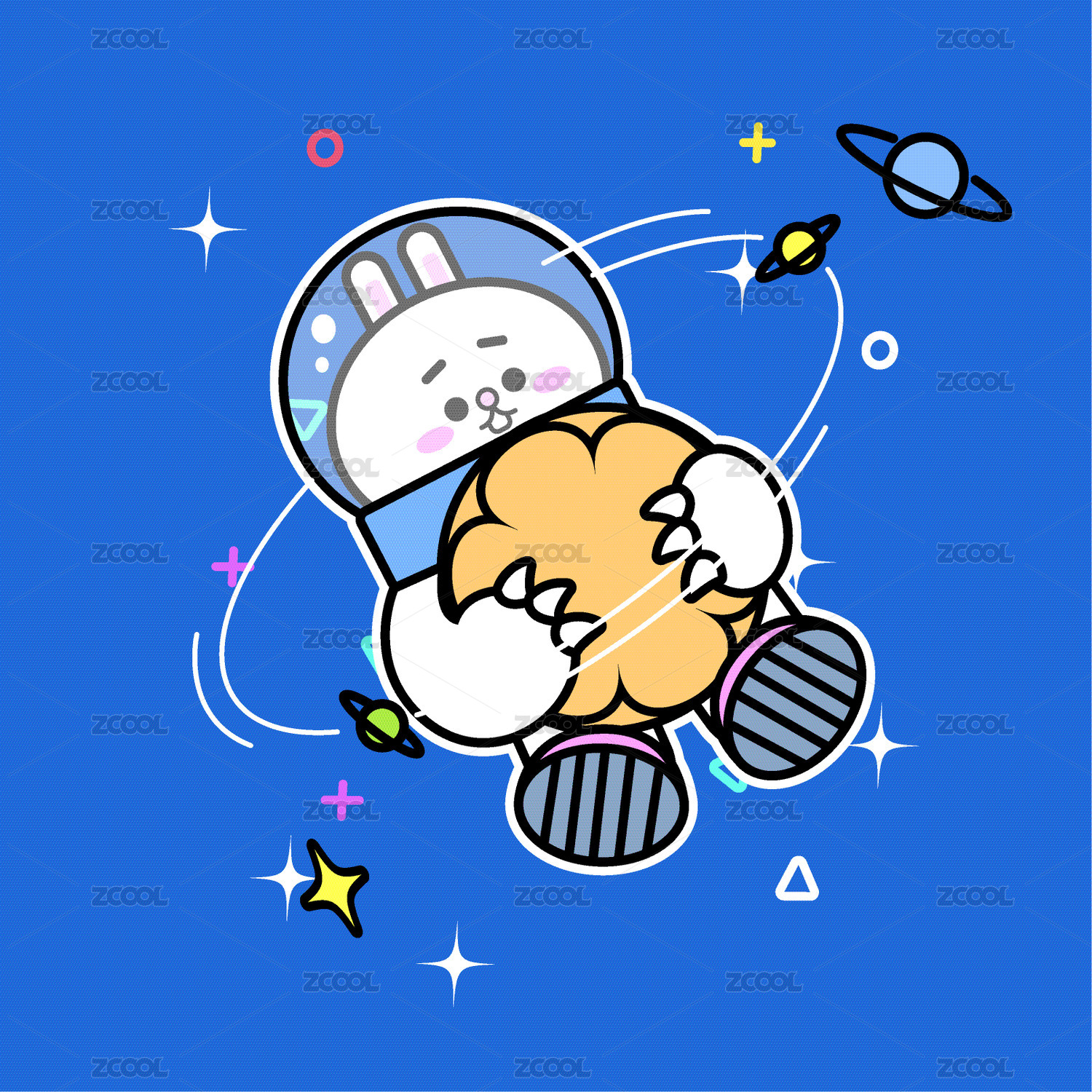 太空兔子抱著月餅
