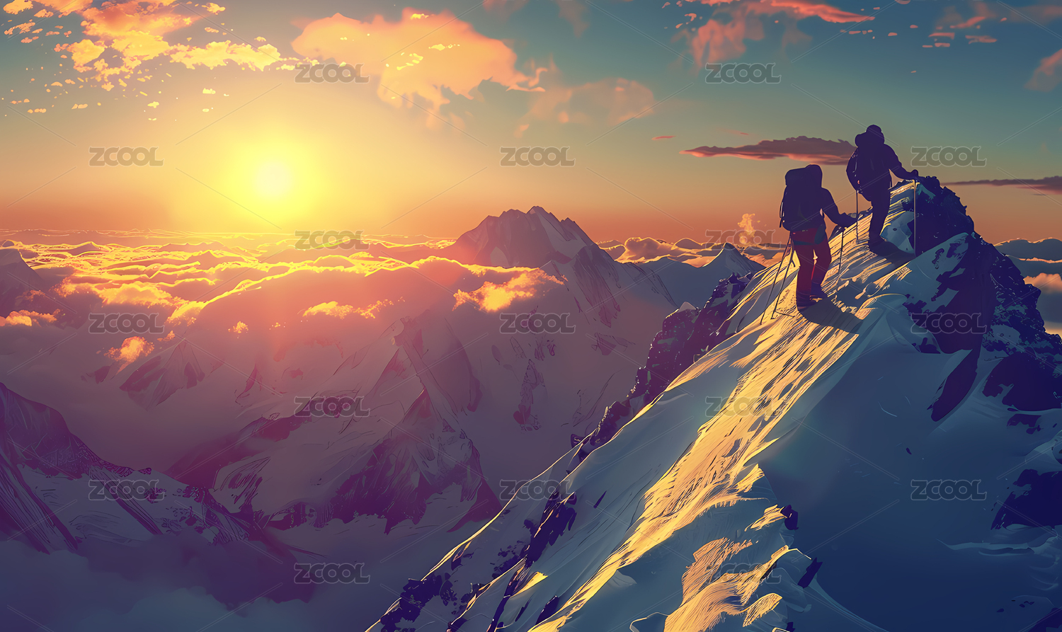 勵(lì)志團(tuán)隊(duì)攀登勇往直前徒步夢想登頂雪山