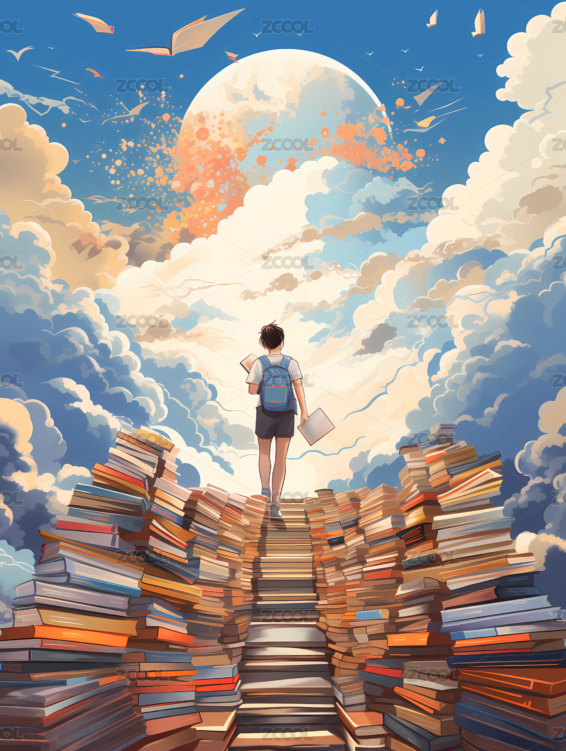 學(xué)生讀書節(jié)攀登知識高峰書海學(xué)習(xí)高考插畫