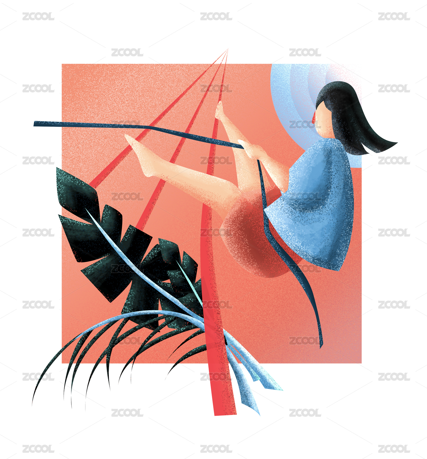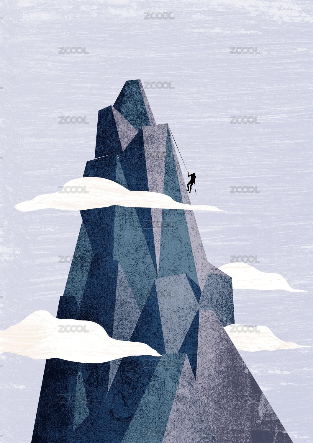 攀登向上的小女孩簡約幾何噪點(diǎn)插畫