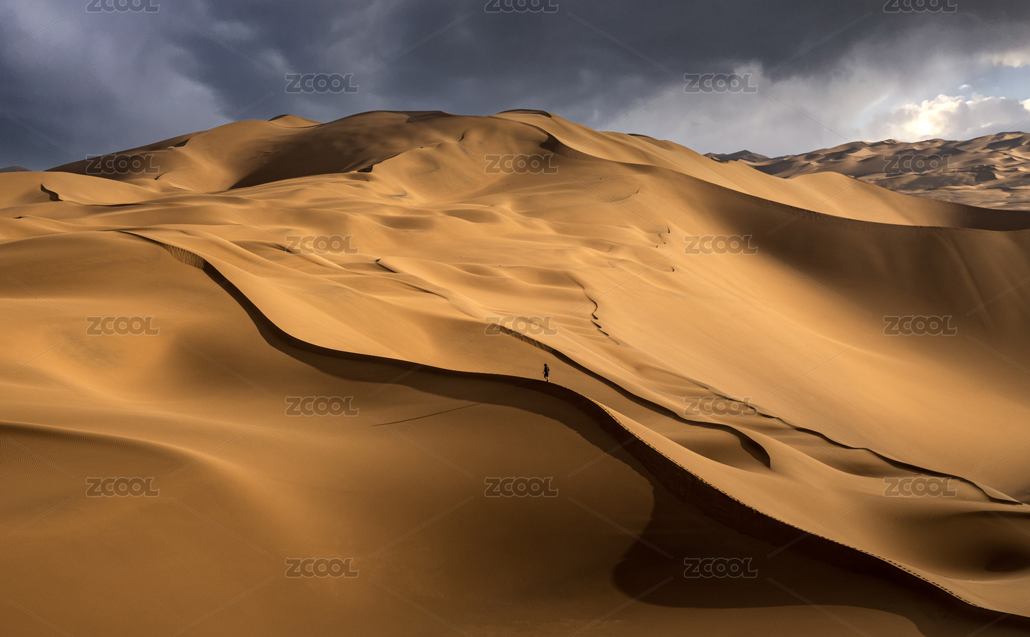 中國新疆吐魯番鄯善縣庫木塔格沙漠的攀登者