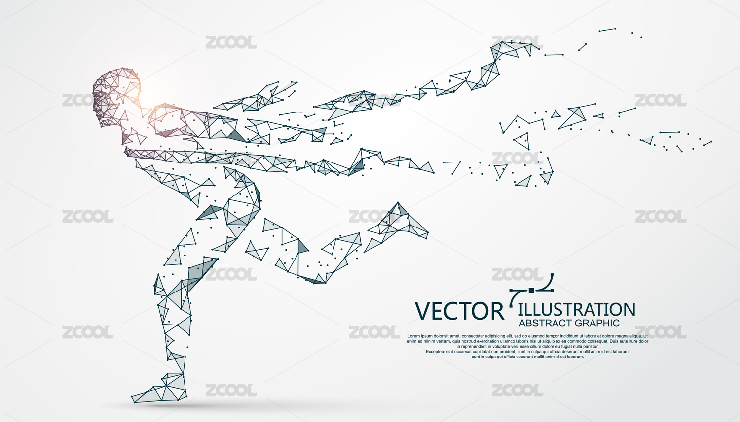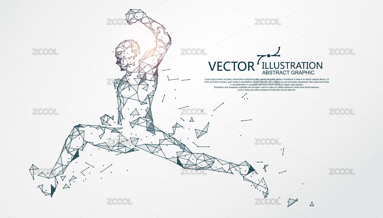 奔跑者、體育運(yùn)動員、積極向上的人、矢量點(diǎn)線面組成的攀登者。