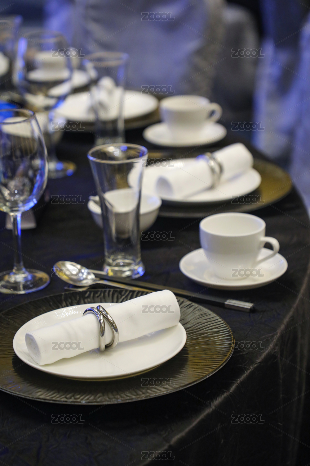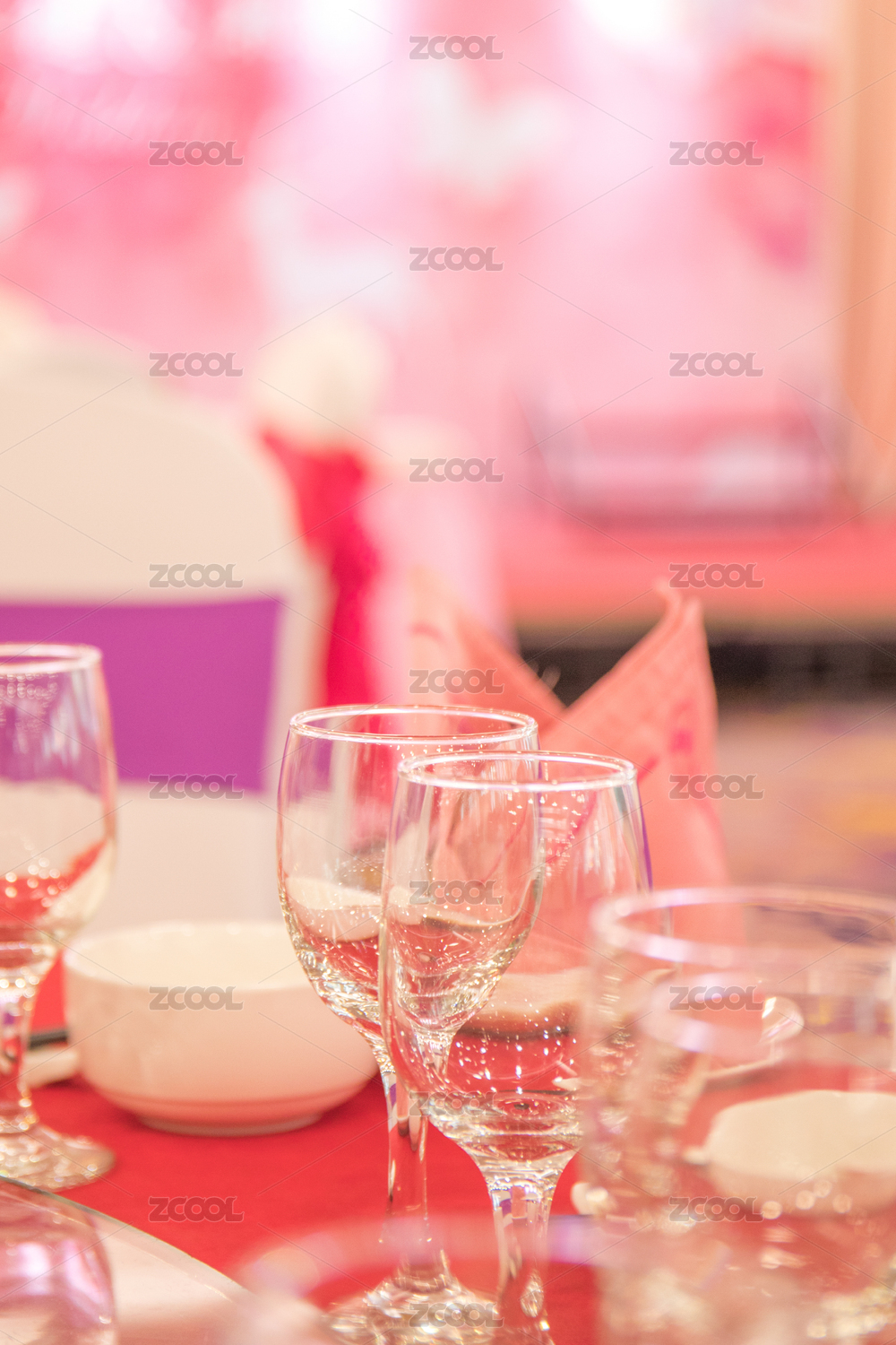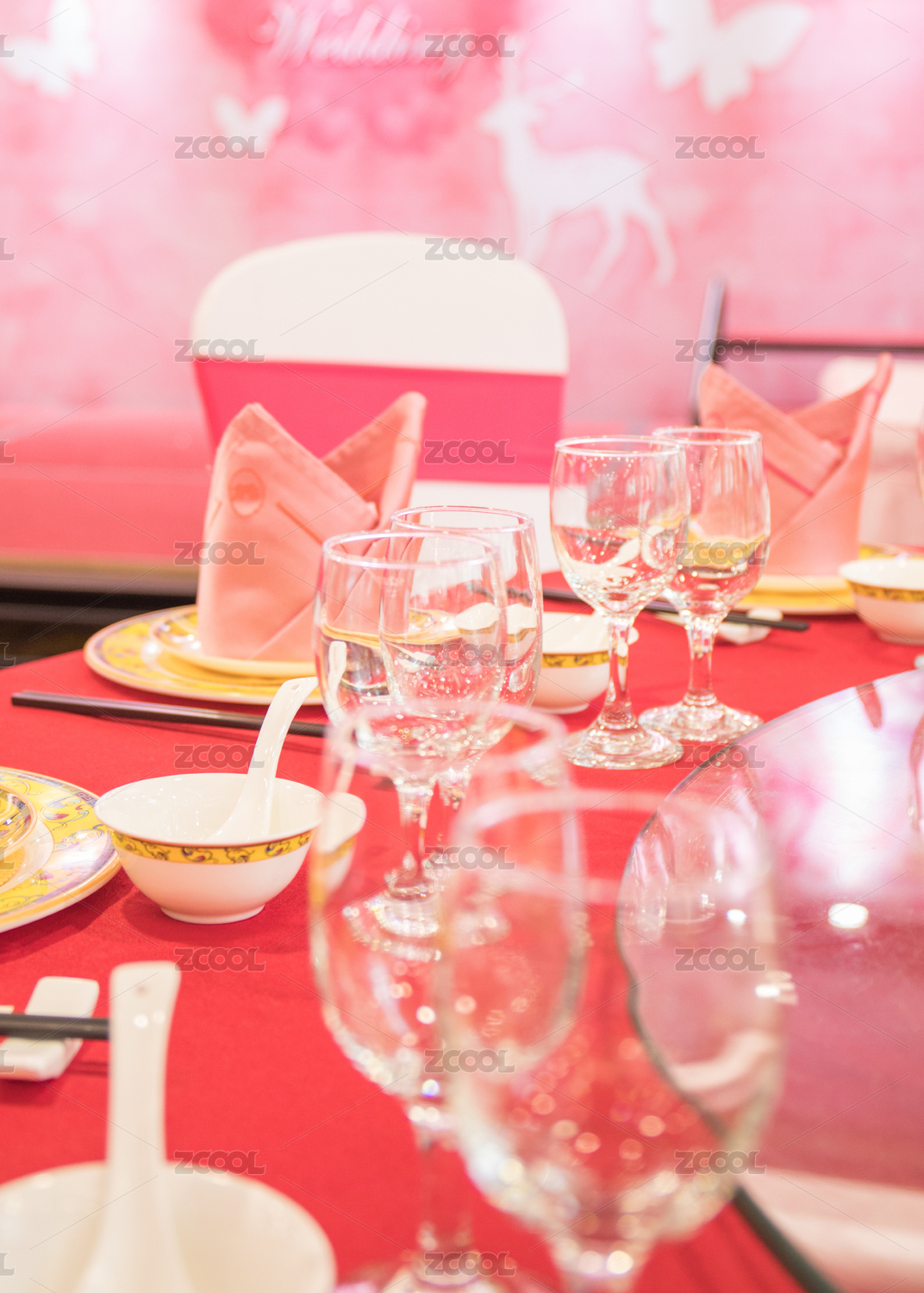 酒店婚禮宴席上布置精美的餐桌