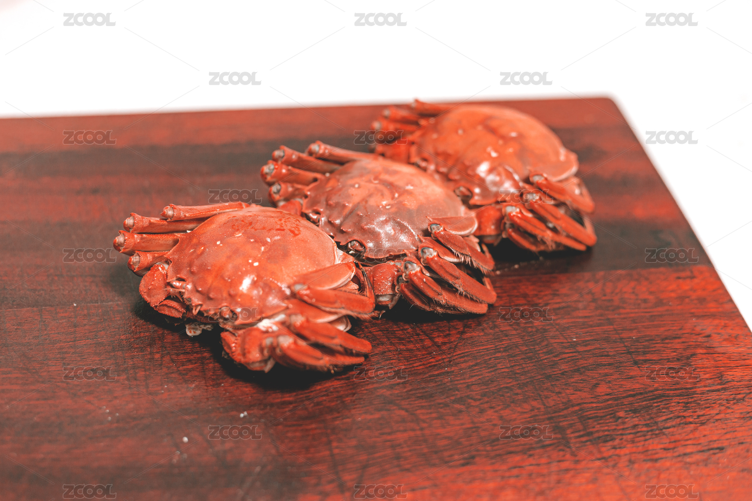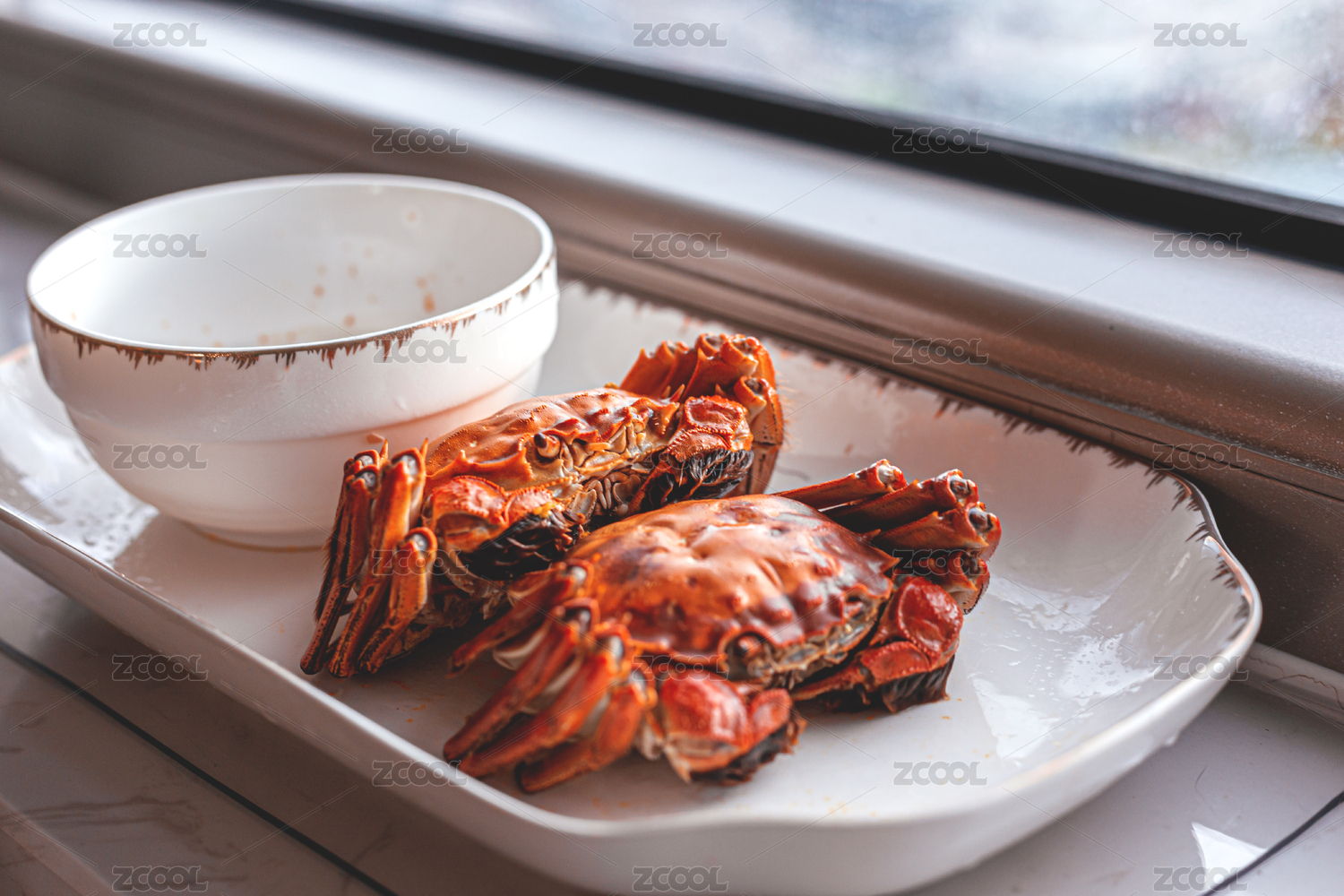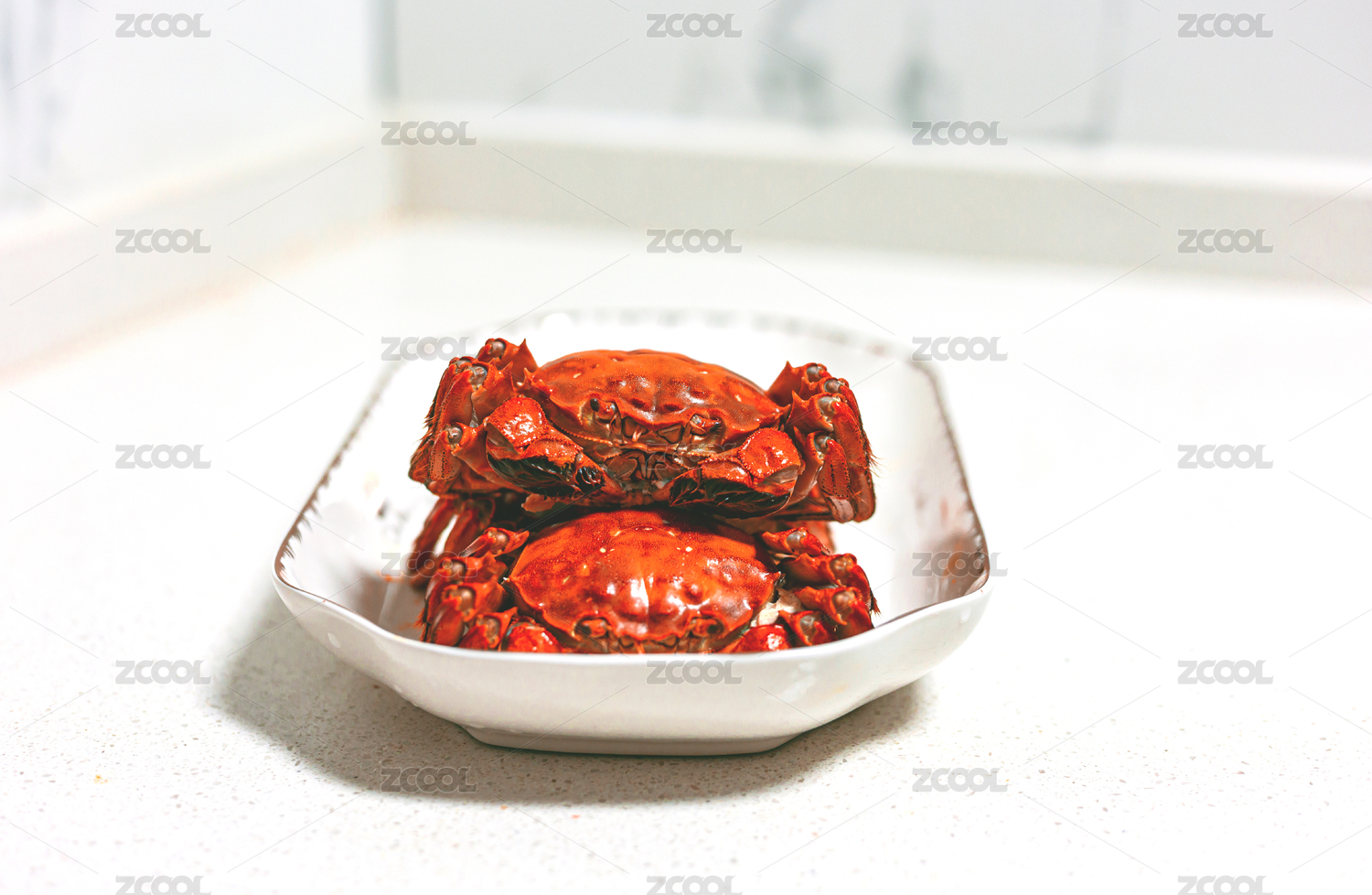 幾只蒸熟的大閘蟹及各式擺盤