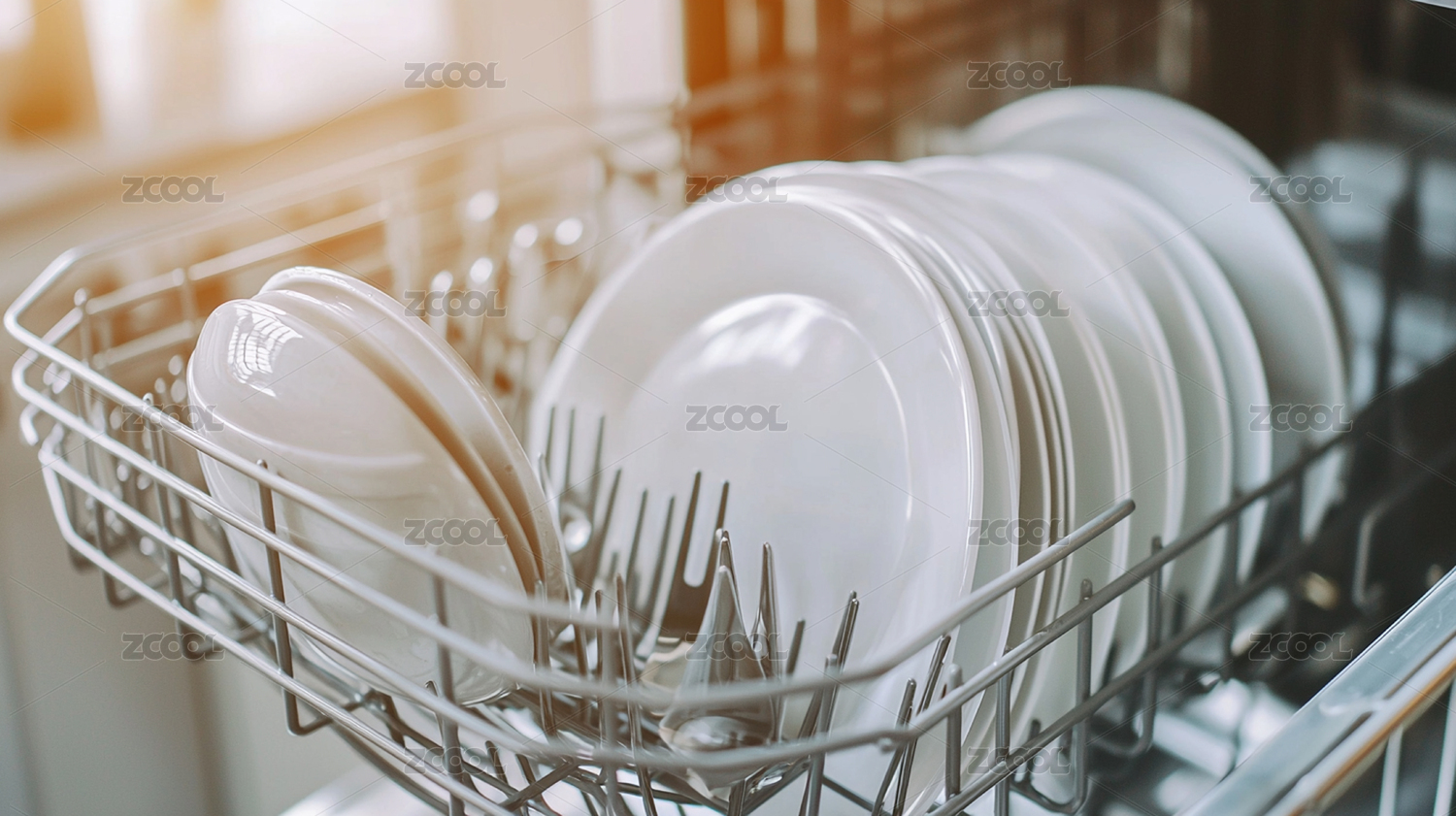 洗碗機(jī)內(nèi)的潔凈碗盤