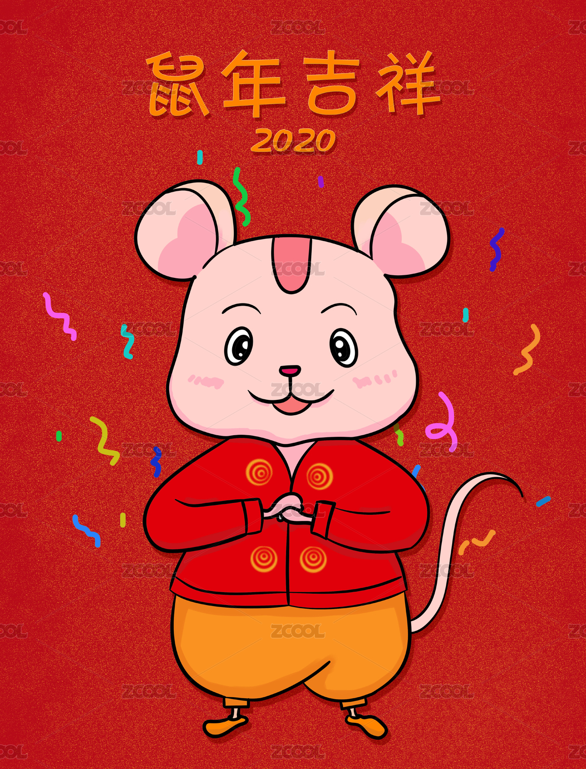 鼠年春節(jié)瑞鼠迎春卡通插畫