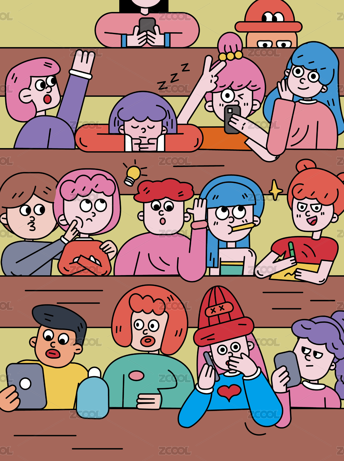 畢業(yè)季學(xué)生們歡呼光影唯美插畫