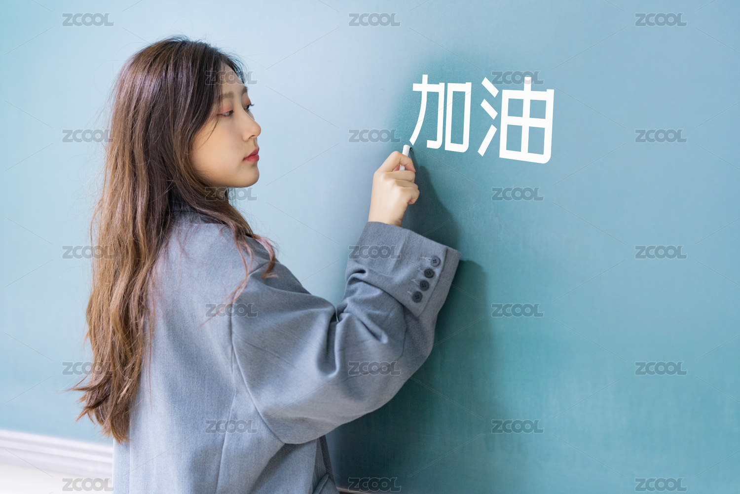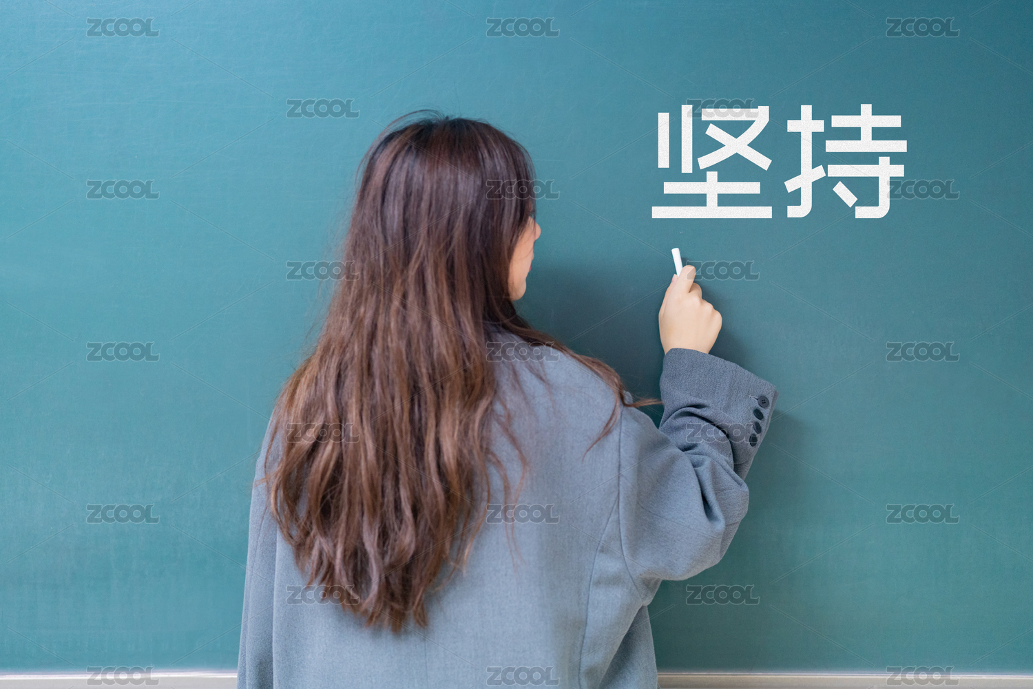 一個美女老師再黑板上寫著板書教導(dǎo)學(xué)生們品德兼優(yōu)
