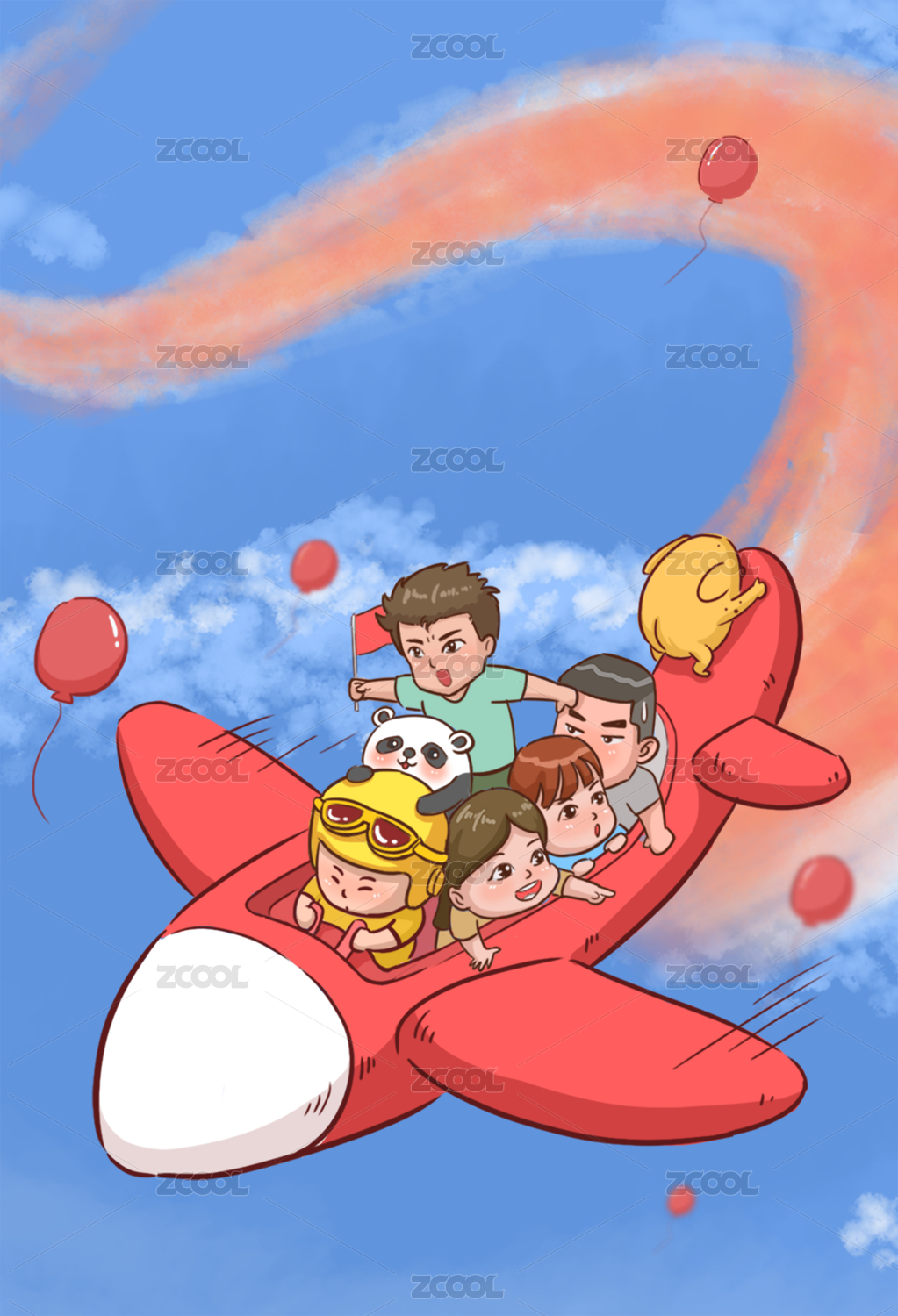 國慶節(jié)小學(xué)生們坐飛機(jī)歡度國慶