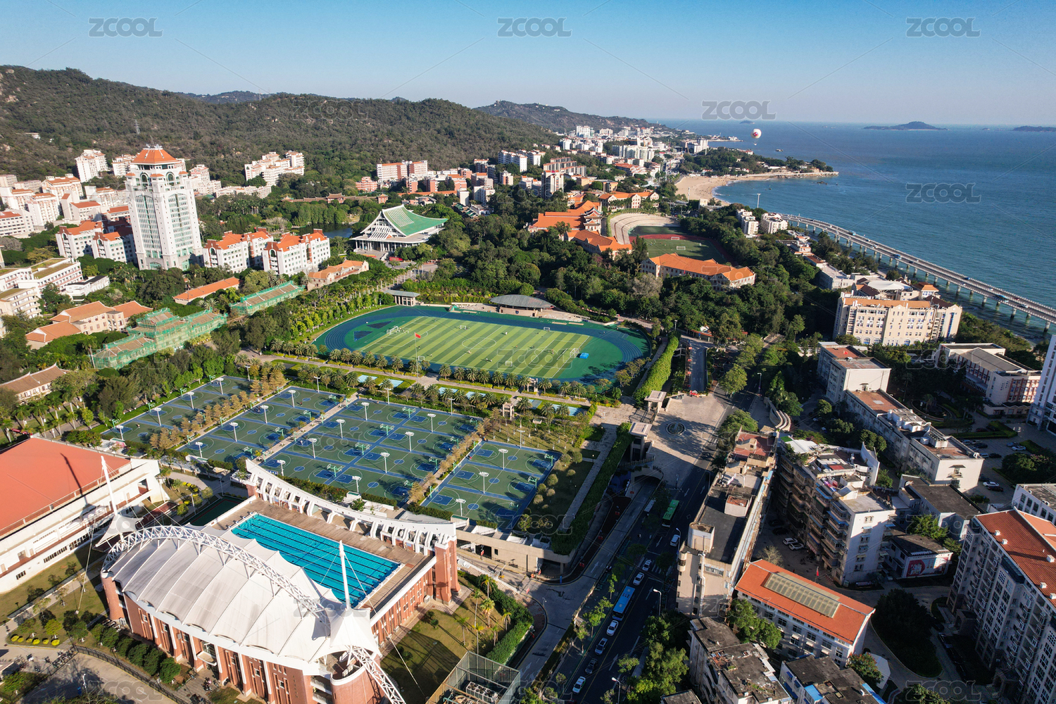 中國福建省廈門大學思明校區(qū)航拍風光