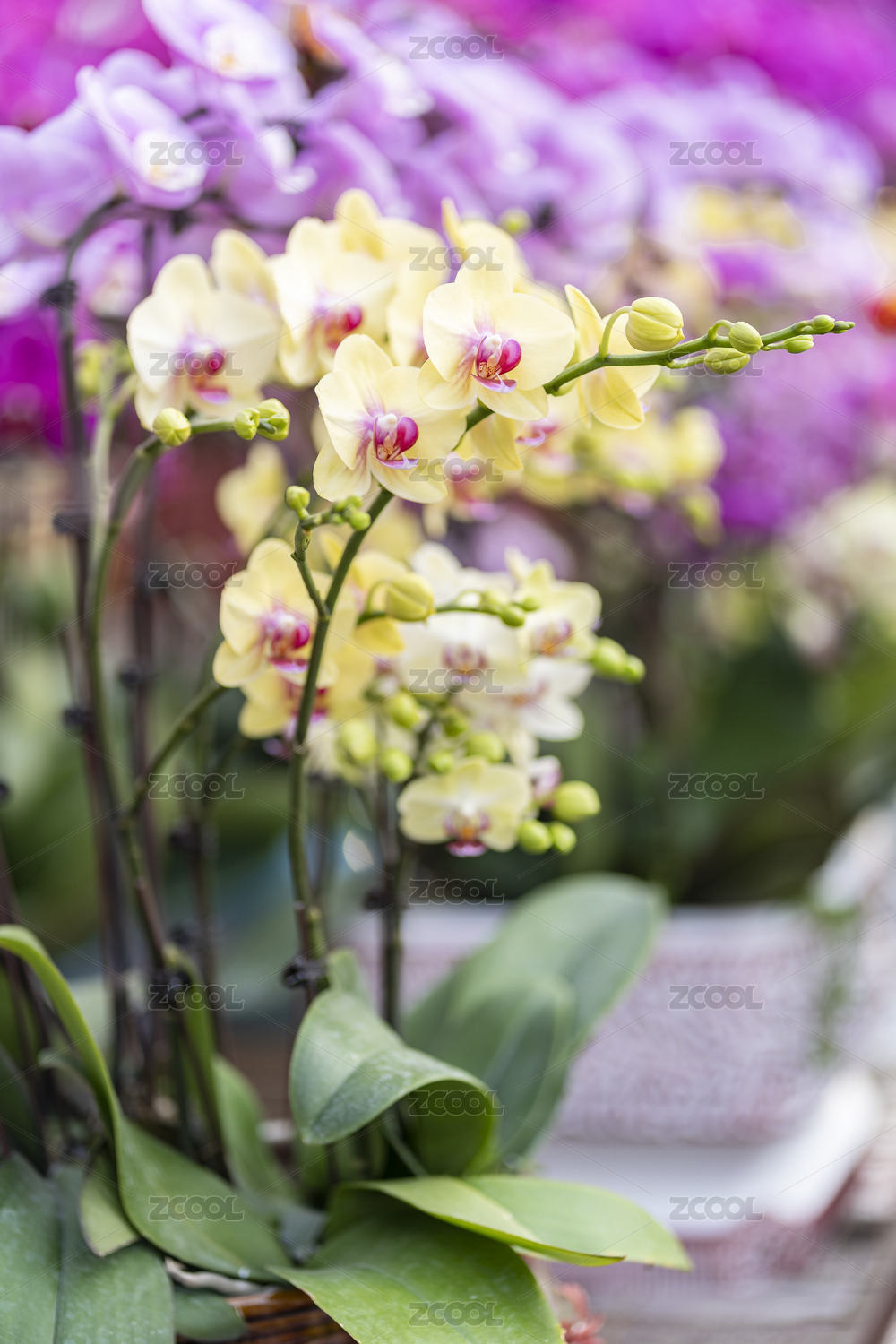 大棚內(nèi)一盆黃色為主的雜色蝴蝶蘭