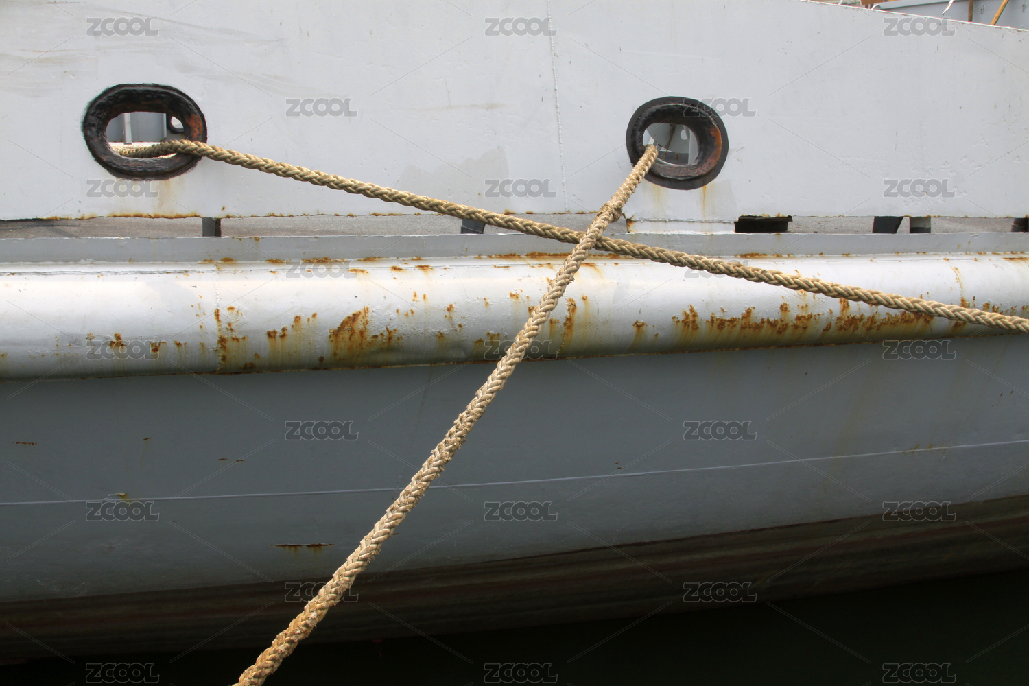 船只纜繩與銹跡船體