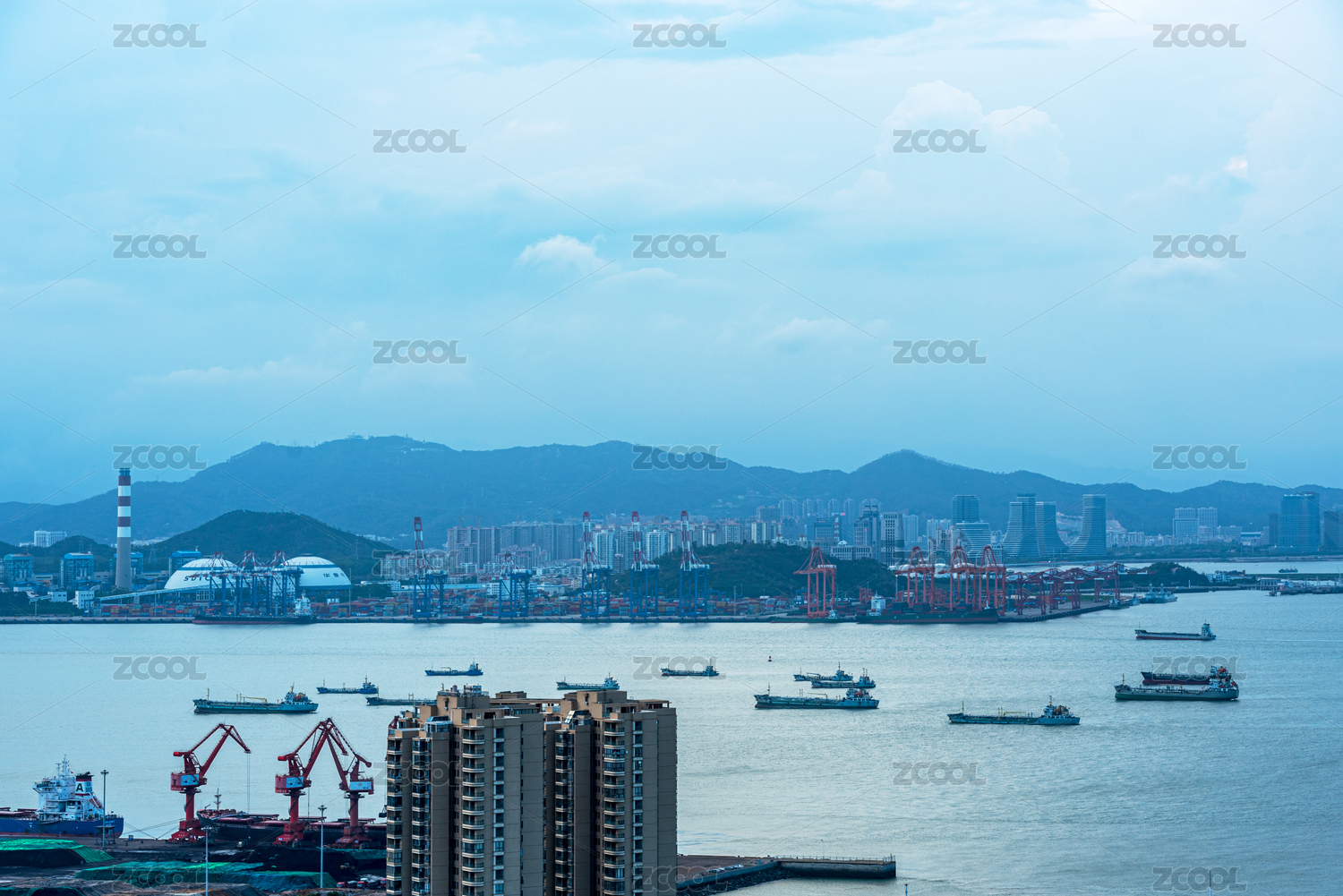 港口停泊的船只與工業(yè)設施