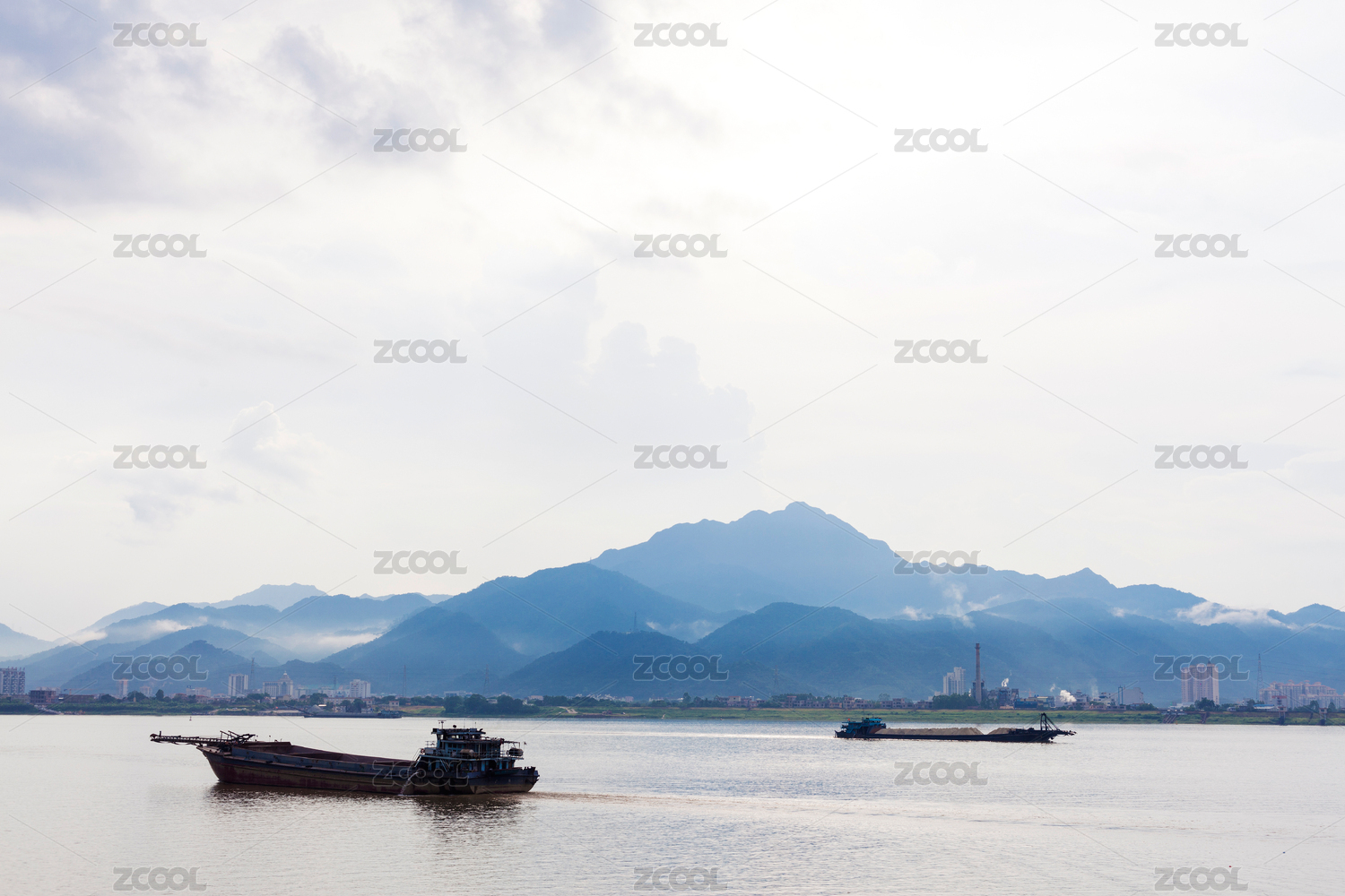 淮河河流上的輪船船只風光