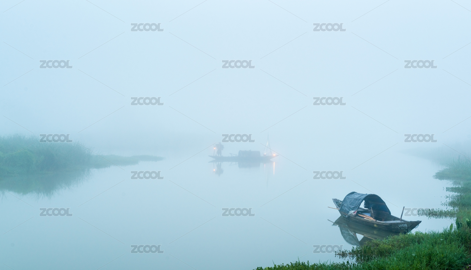 浙江建德下崖薄霧中的船只