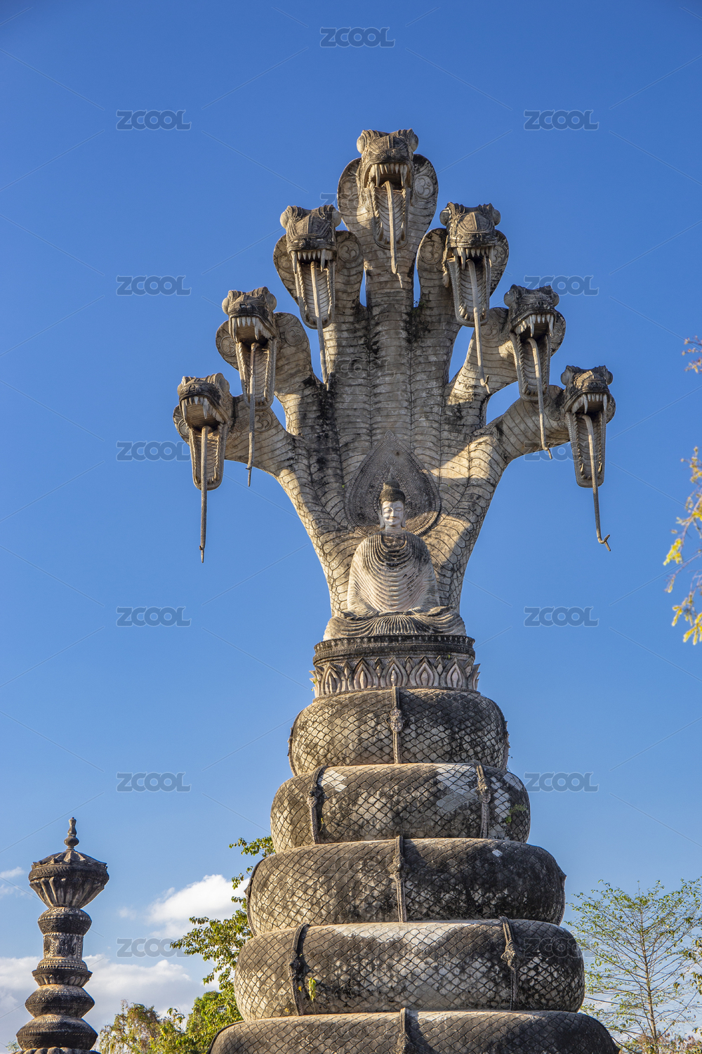 泰國(guó)廊開撒拉教窟的娜迦釋迦摩尼佛雕塑