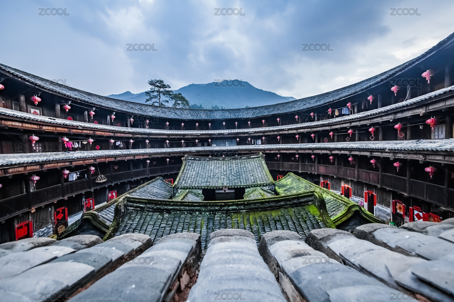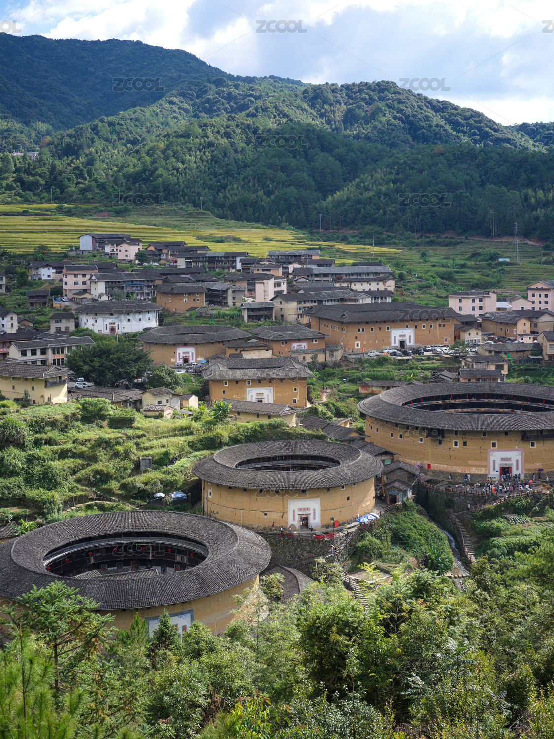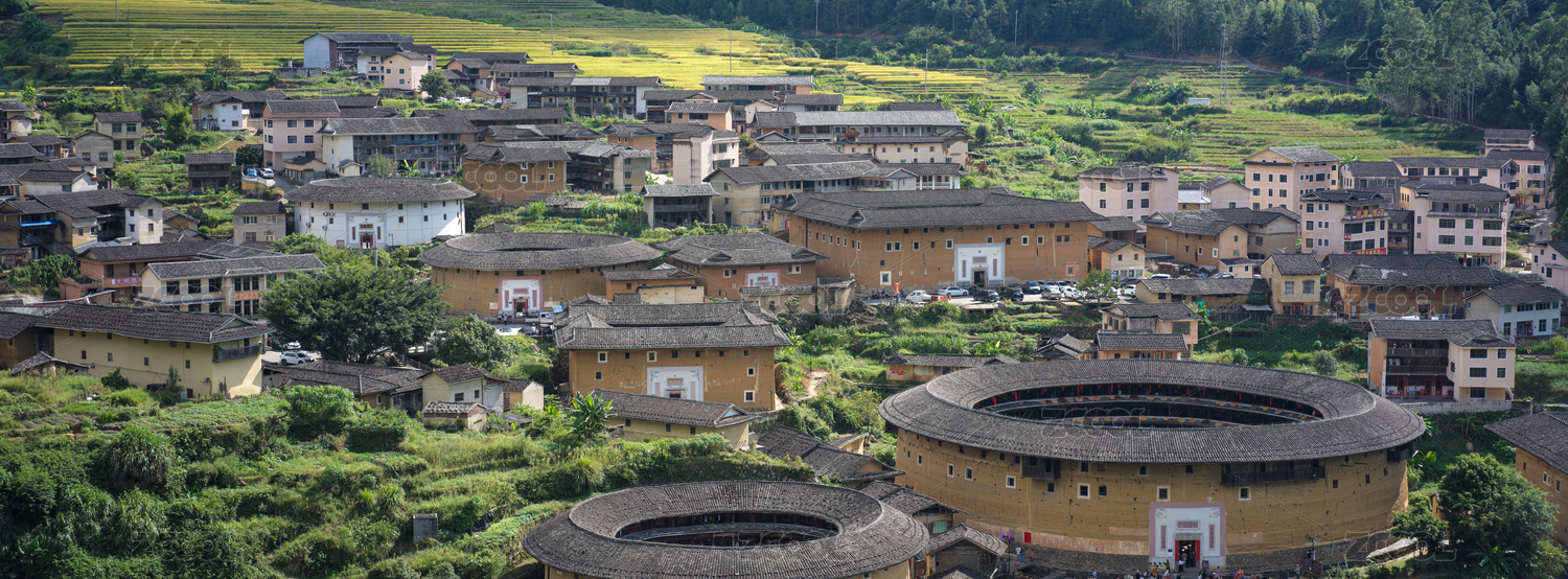 福建省龍巖市初溪土樓群的壯麗景色