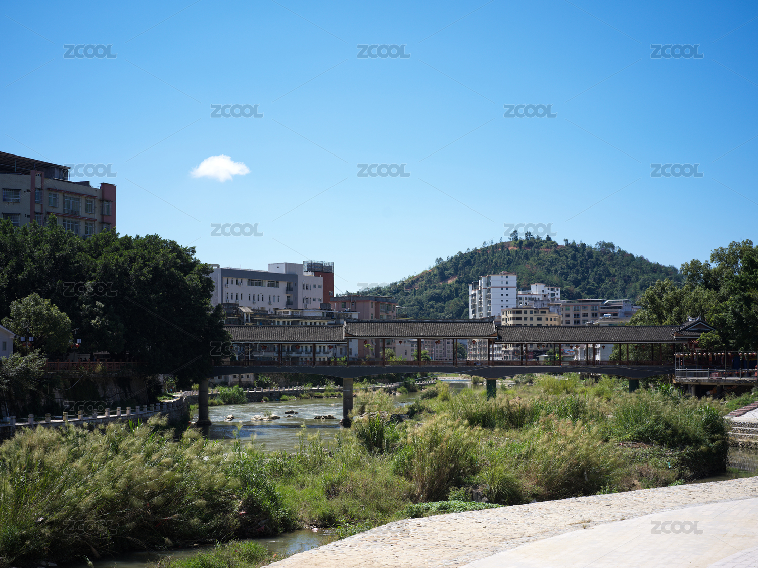 福建省龍巖市下洋鎮(zhèn)河流與小鎮(zhèn)風(fēng)光