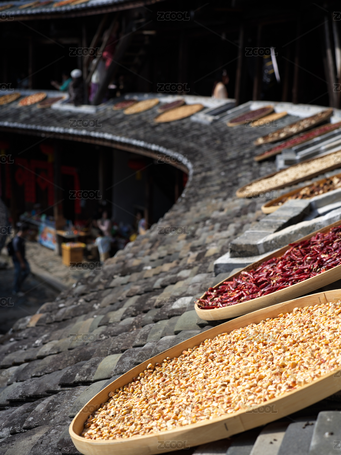 福建省龍巖市初溪土樓的各種干果和谷物展示
