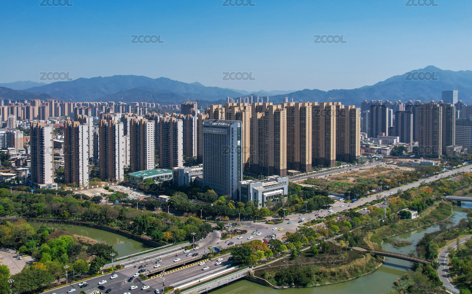 航拍中國福建省龍巖市區(qū)建筑物