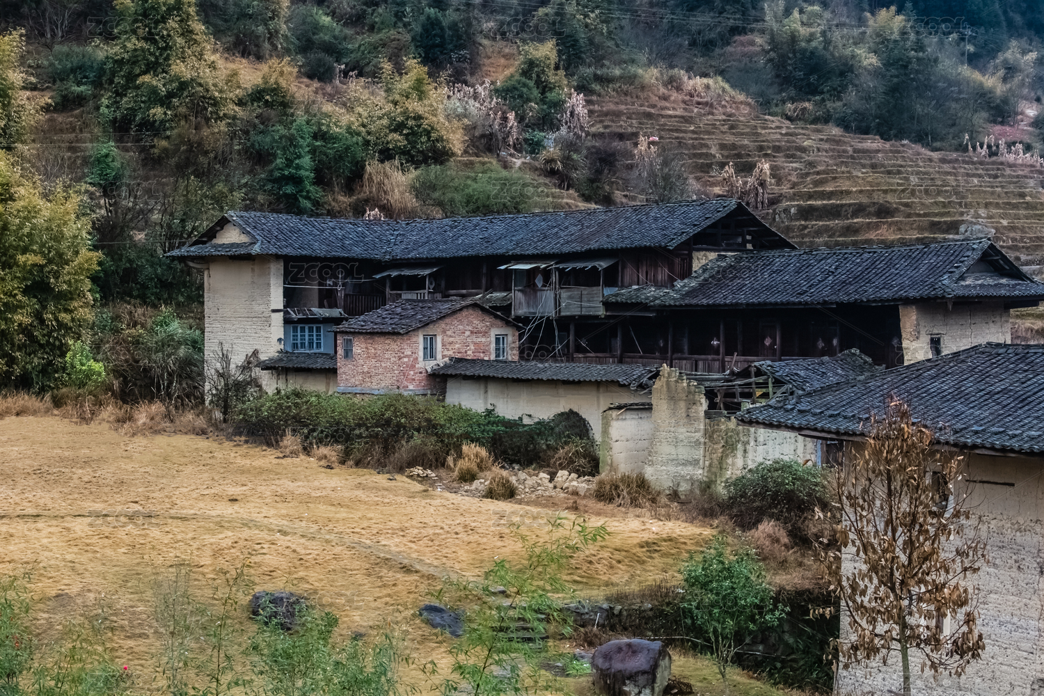 福建省龍巖市永定區(qū)湖坑鎮(zhèn)新南村破敗斷壁殘?jiān)翗墙ㄖ坝^