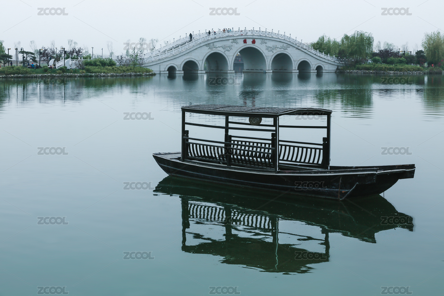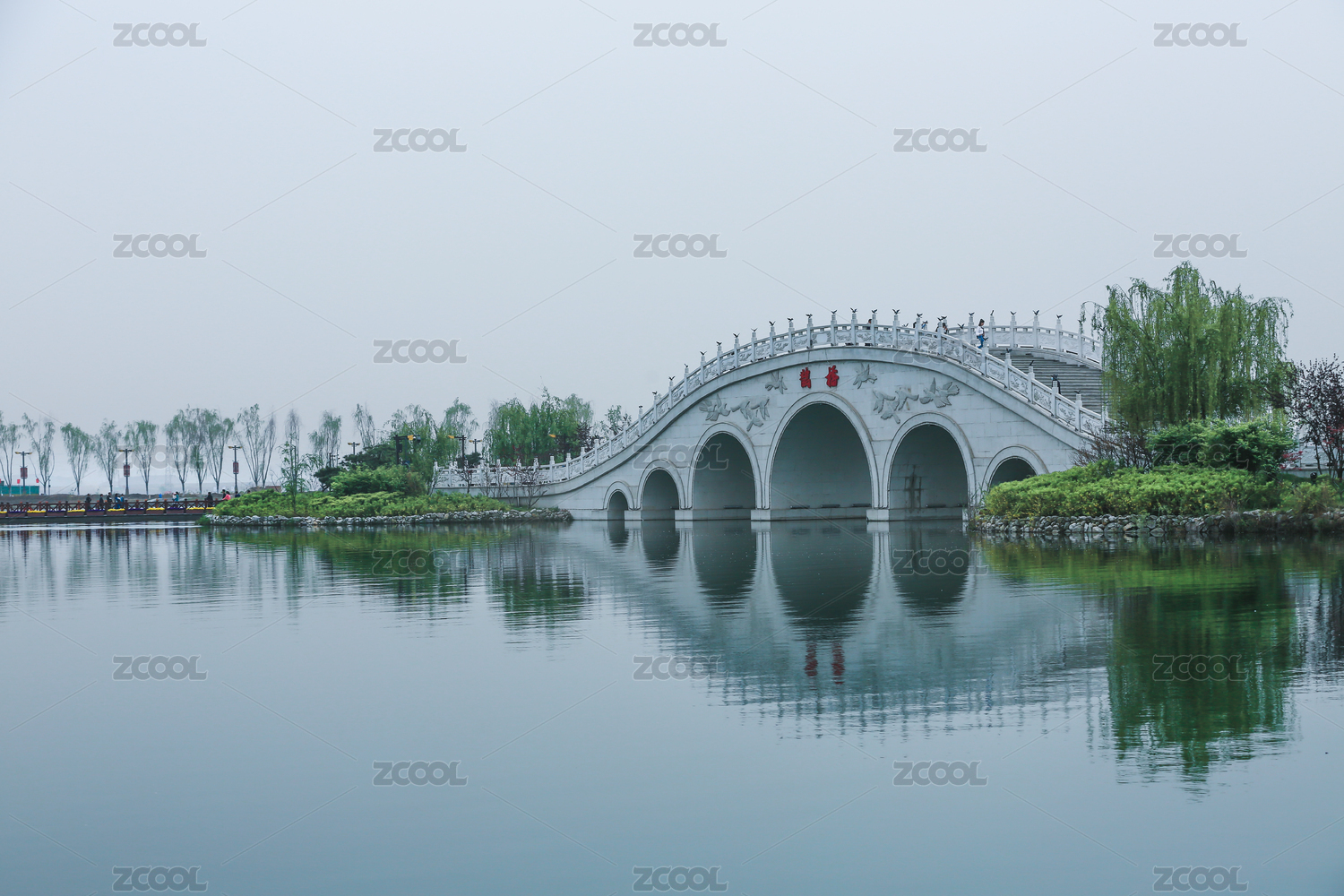 西安昆明池湖面上的一座拱橋