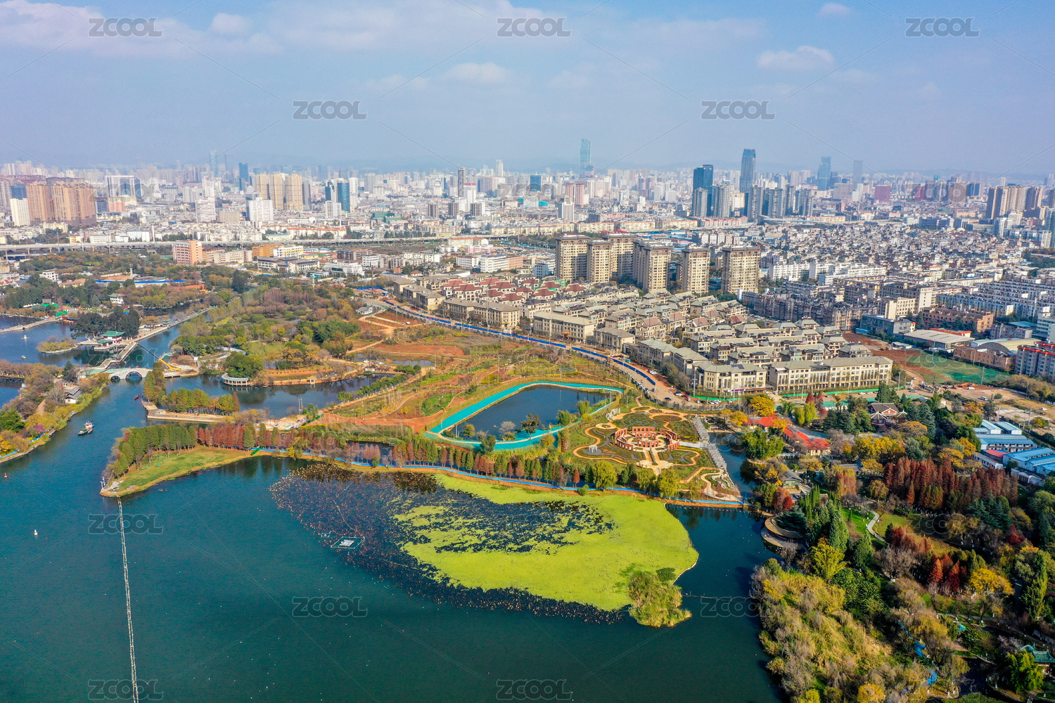 航拍中國(guó)云南昆明滇池草海昆明大觀公園