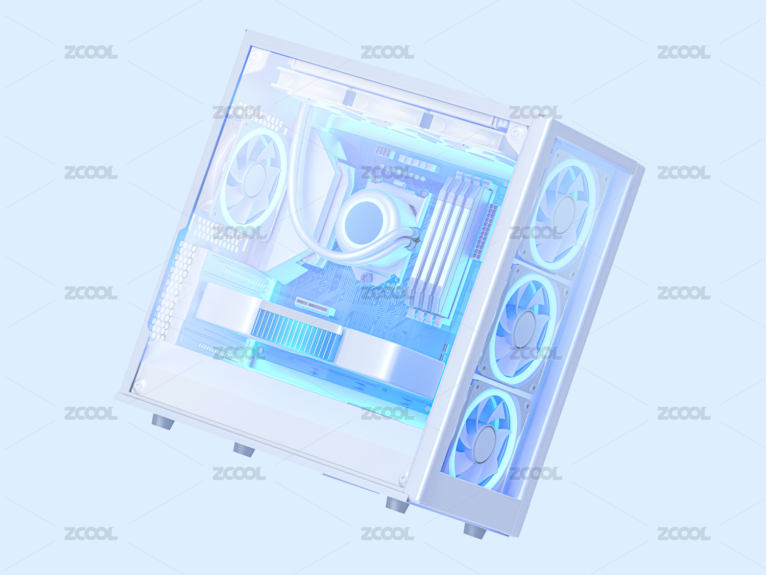 科技藍(lán)白電腦機(jī)箱主機(jī)智能硬件3D圖標(biāo)