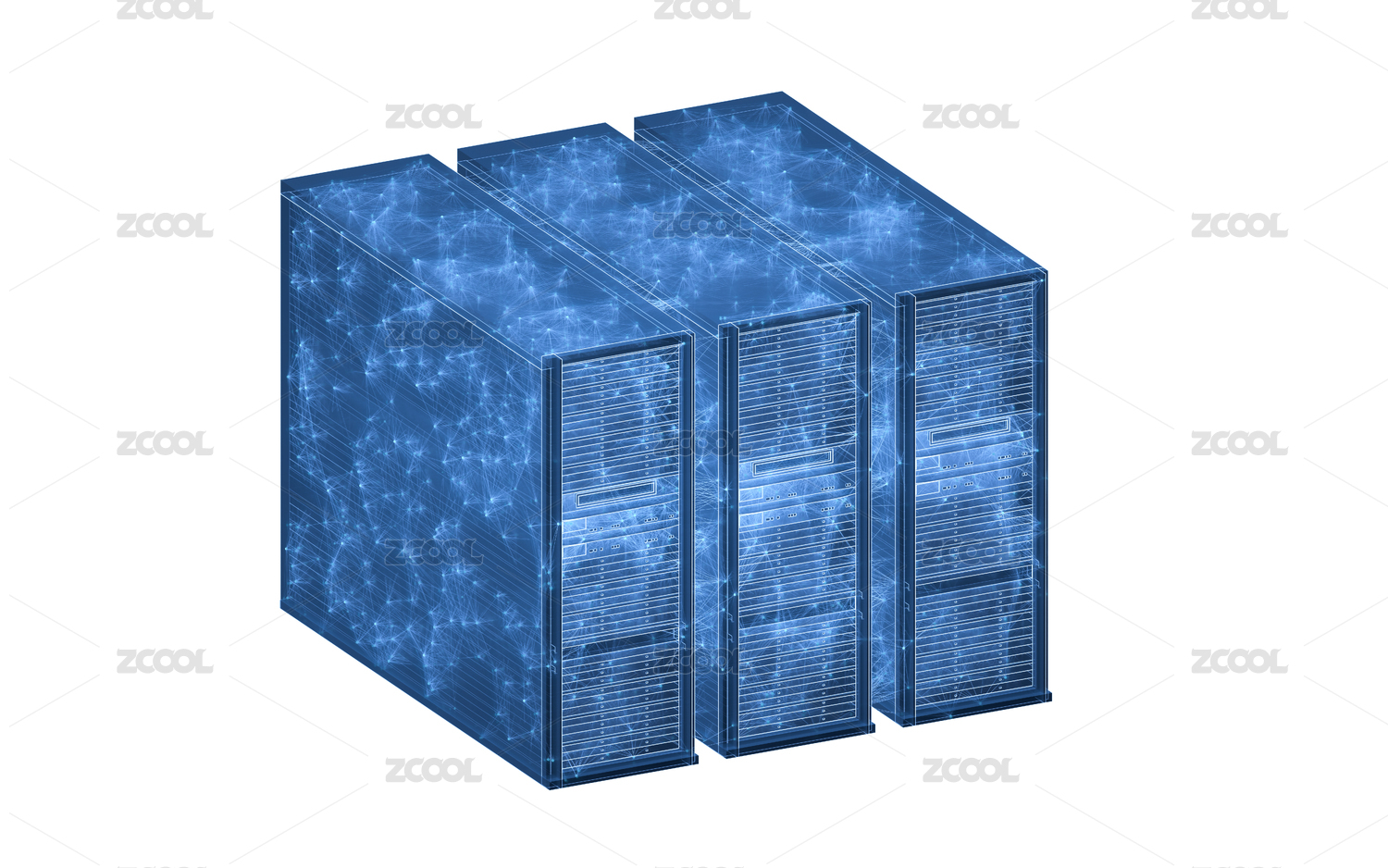 藍(lán)色科技結(jié)構(gòu)機(jī)房主機(jī)3D渲染
