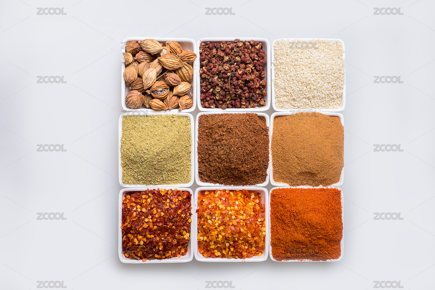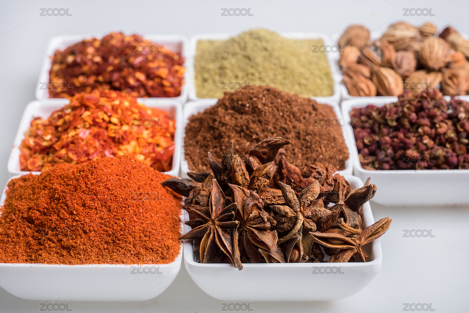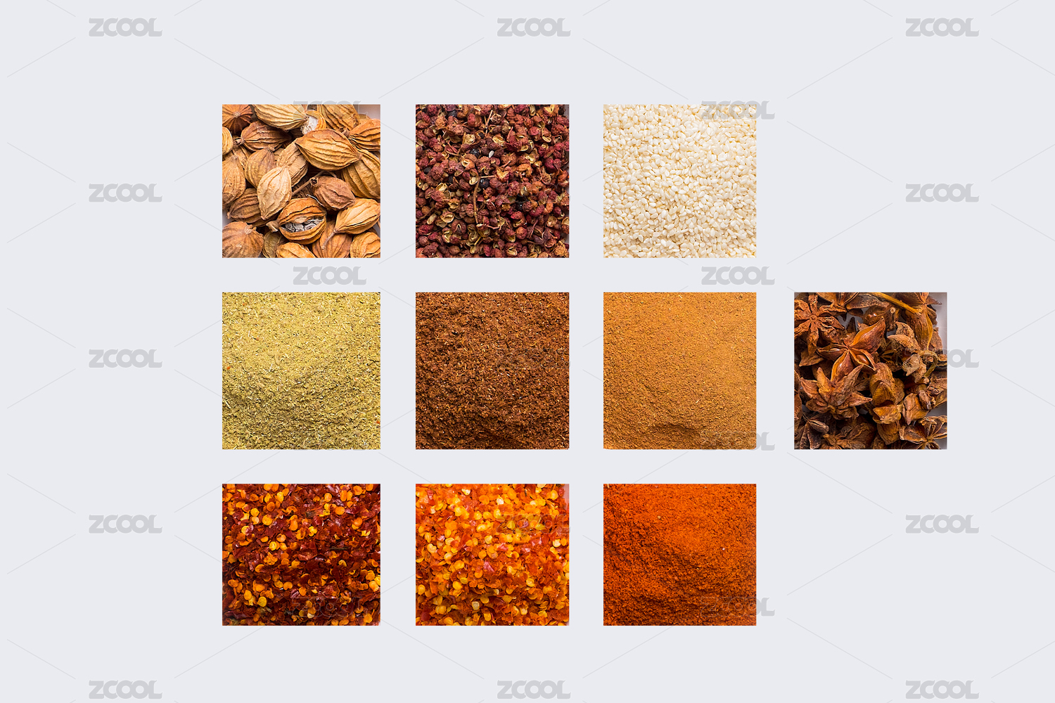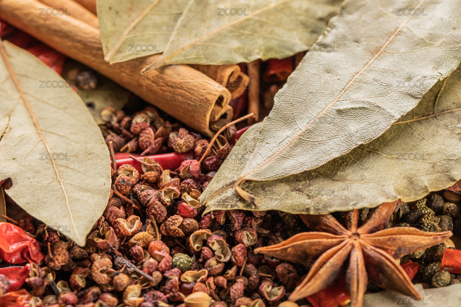 暗色木紋桌上放著一些花椒大料調(diào)味料