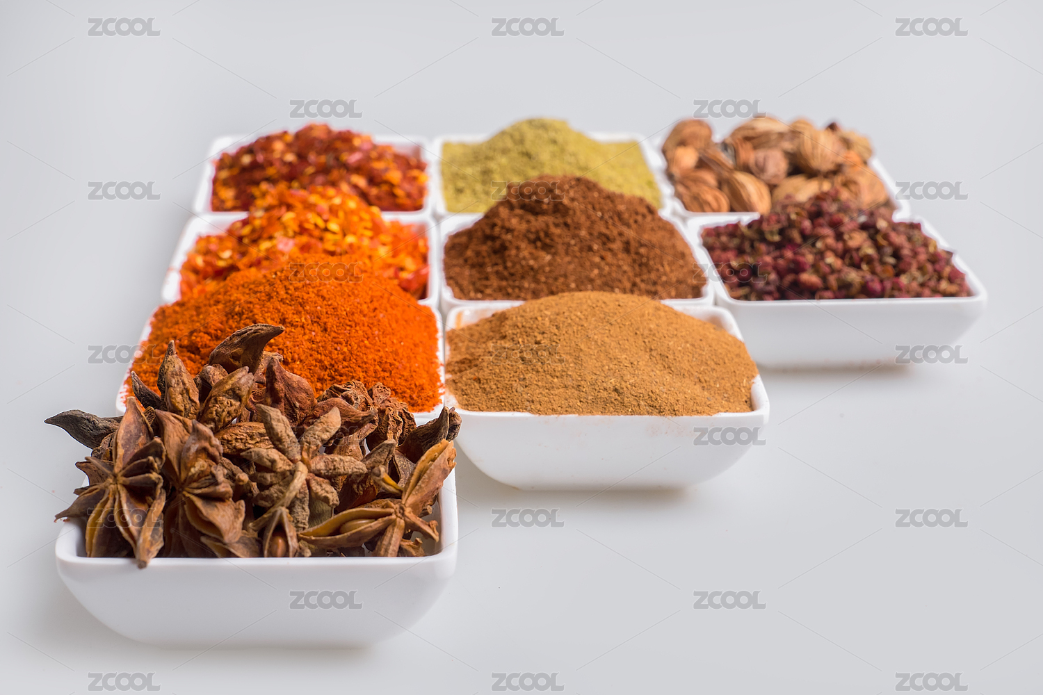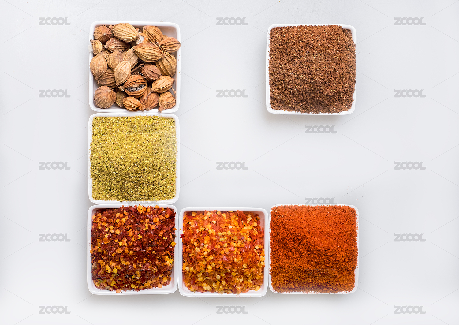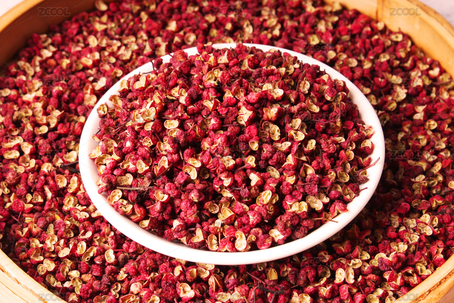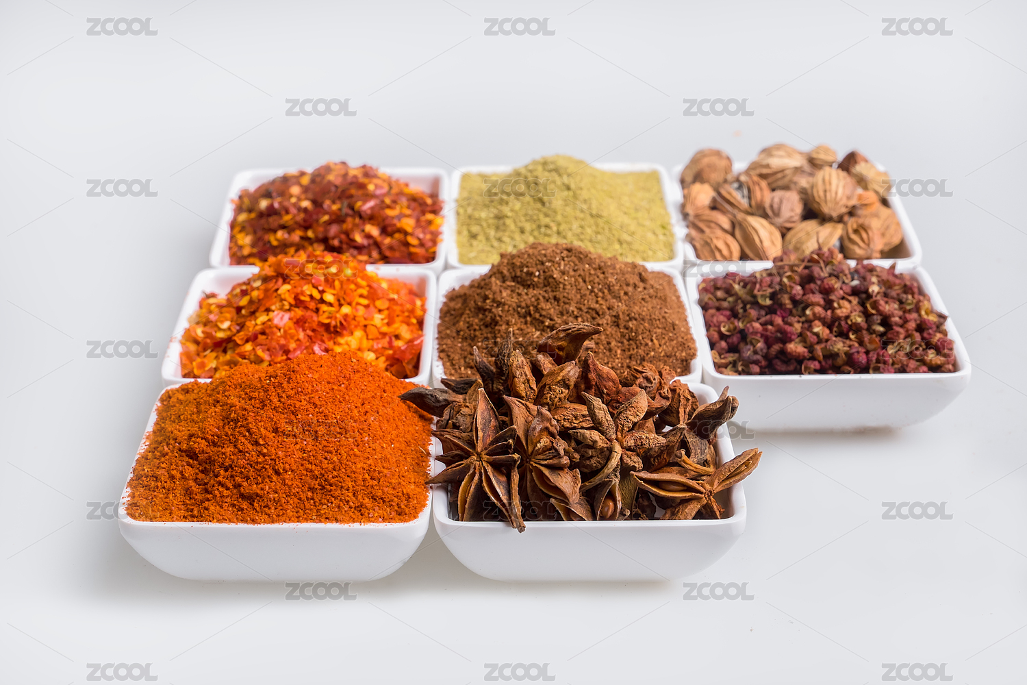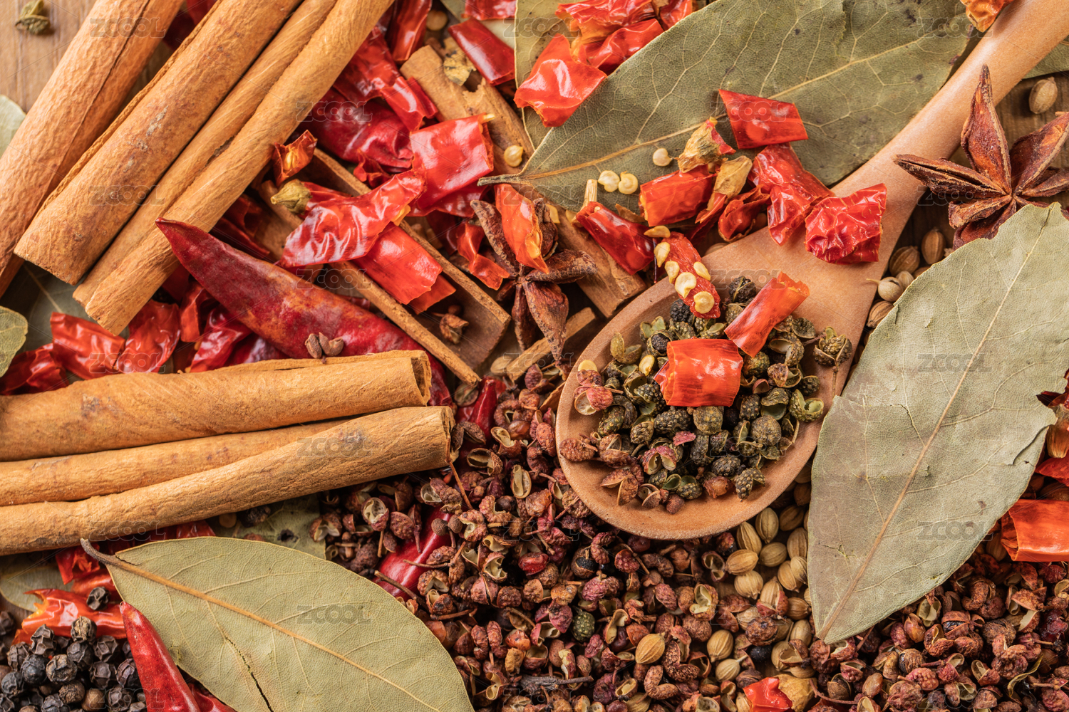 暗色木紋桌上放著一些花椒大料調(diào)味料