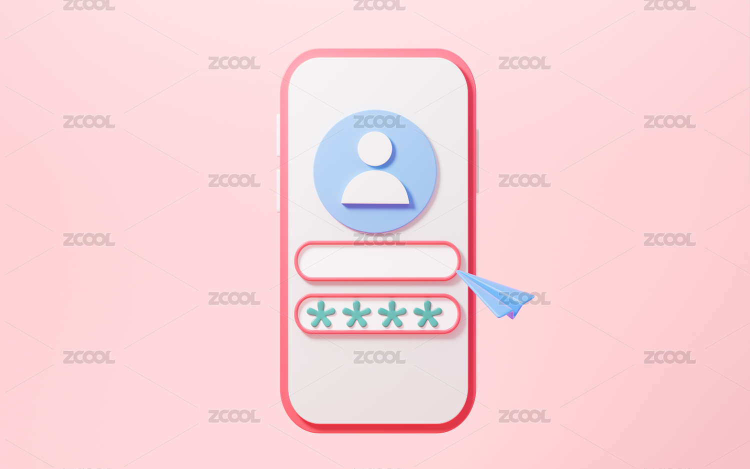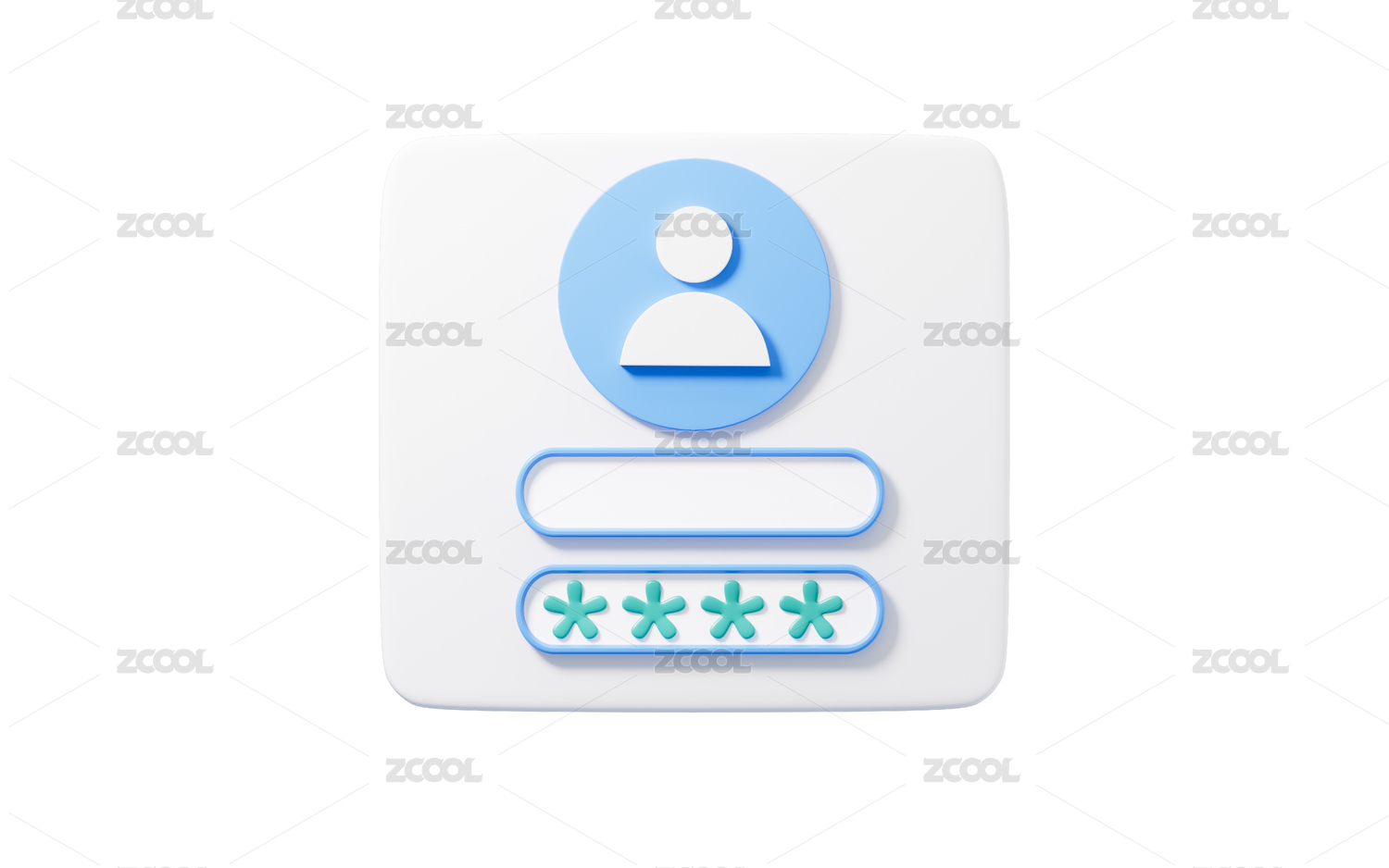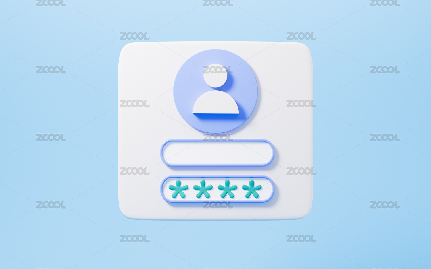 卡通身份認(rèn)證用戶登錄界面3D渲染