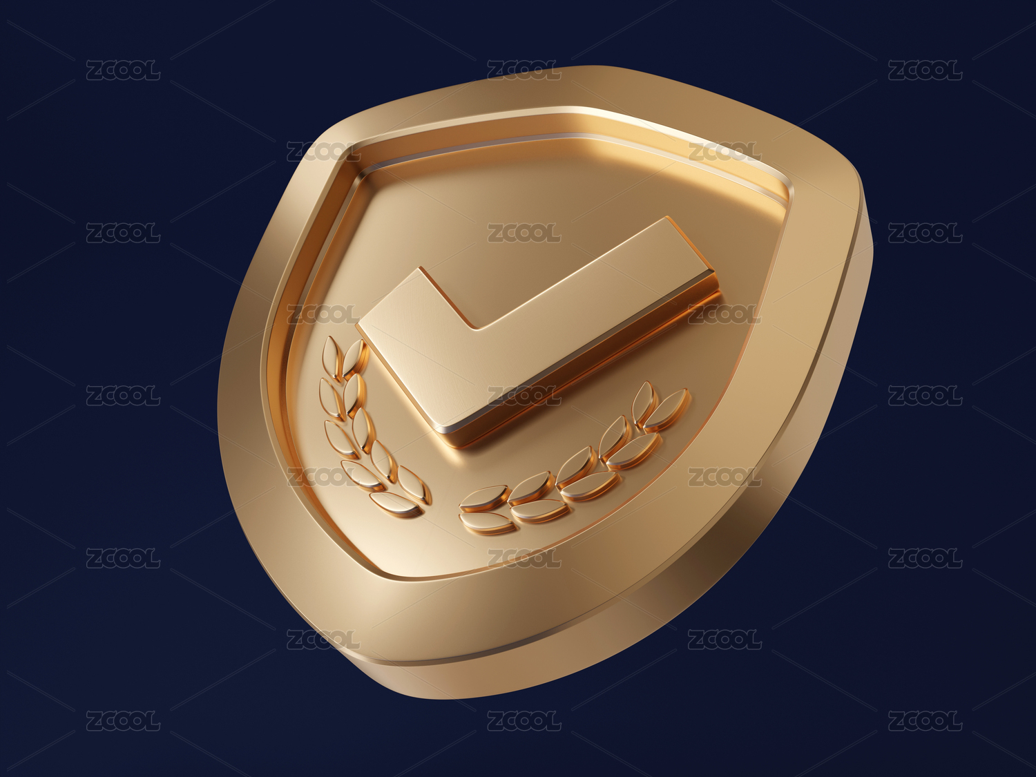 金色認(rèn)證盾牌防護(hù)打勾圖形獎(jiǎng)牌圖標(biāo)