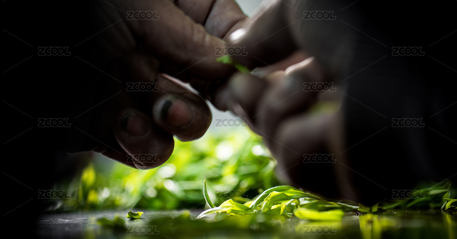 茶農(nóng)在制茶和一個(gè)蓋碗