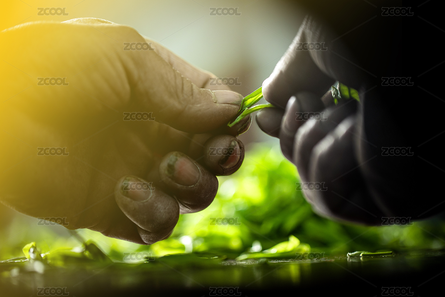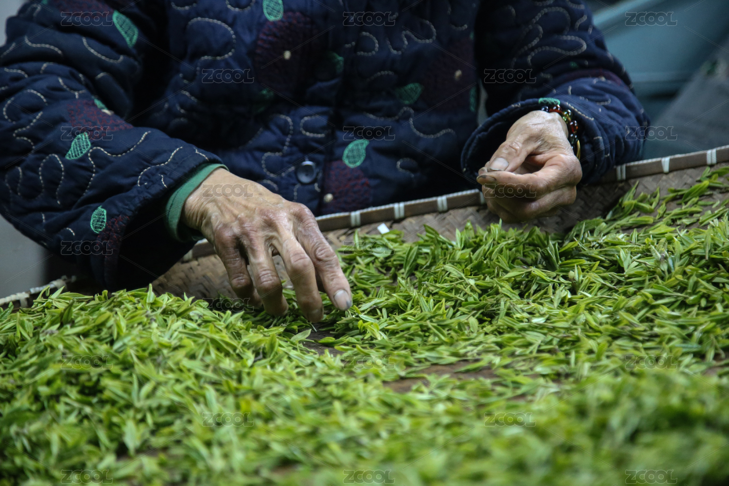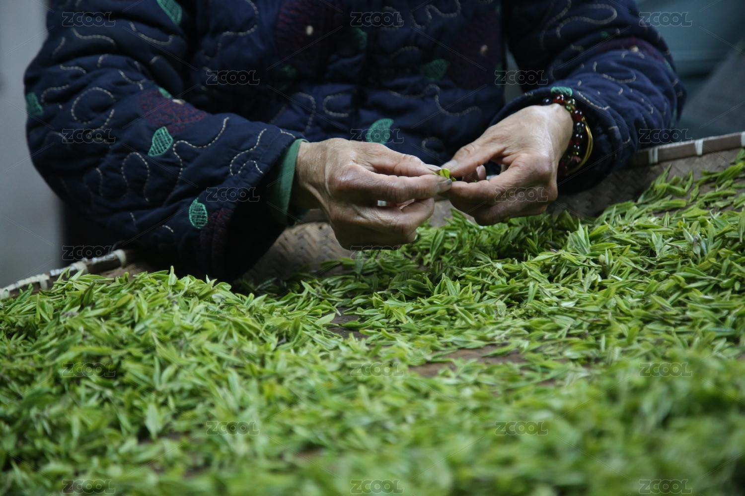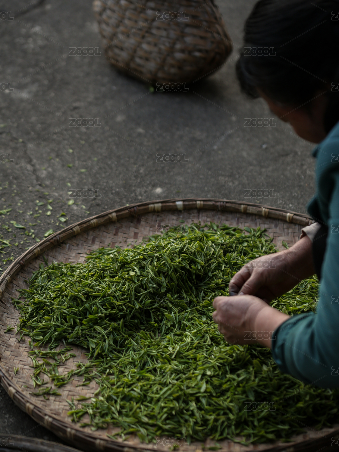 茶農(nóng)正在挑揀新鮮的茶樹(shù)鮮葉