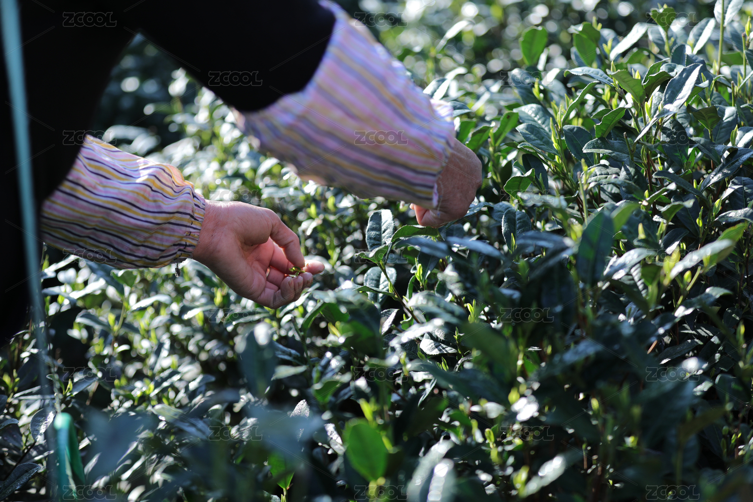 浙江杭州西湖龍井春茶采茶農(nóng)戶采茶特寫(xiě)