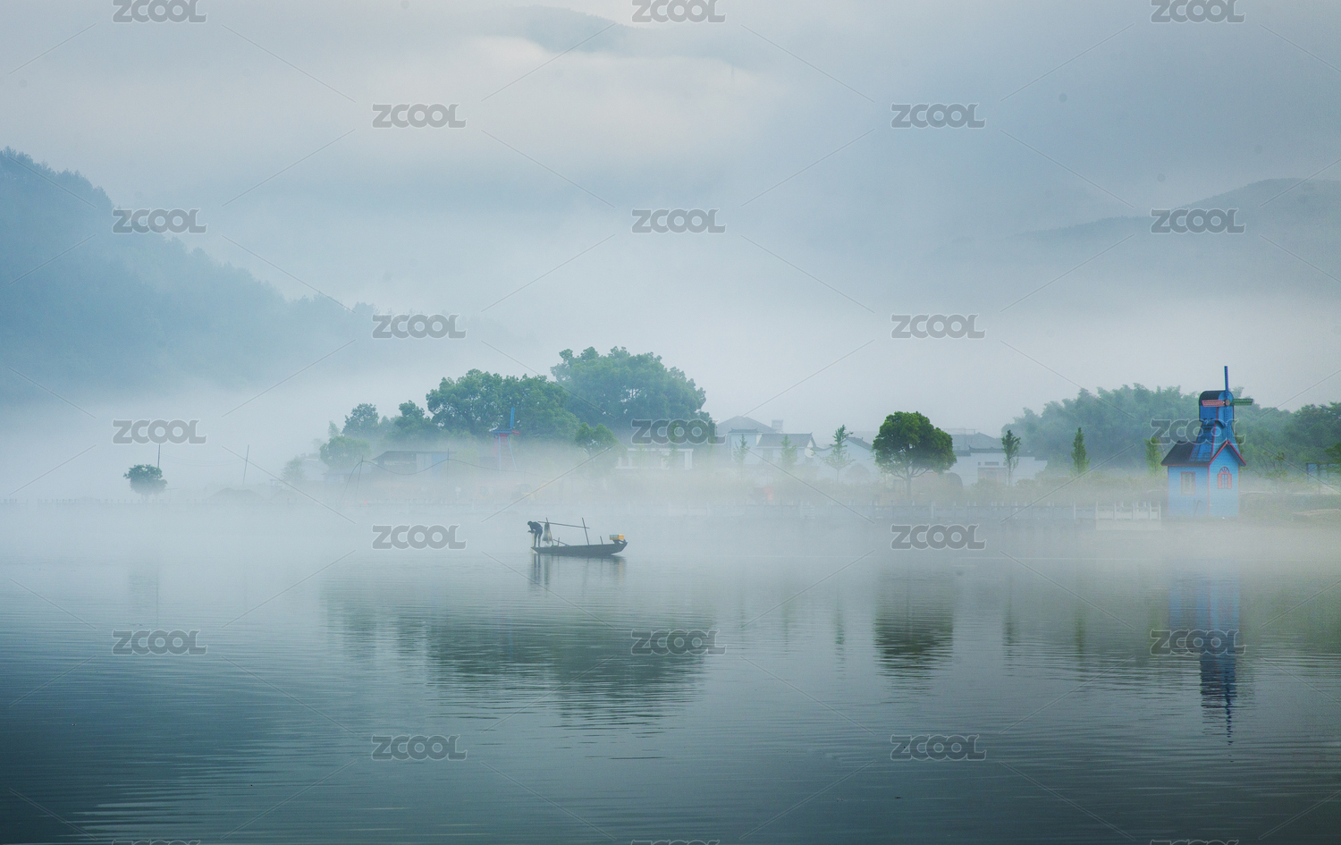 中國(guó)浙江麗水蓮都區(qū)古堰畫鄉(xiāng)甌江晨霧